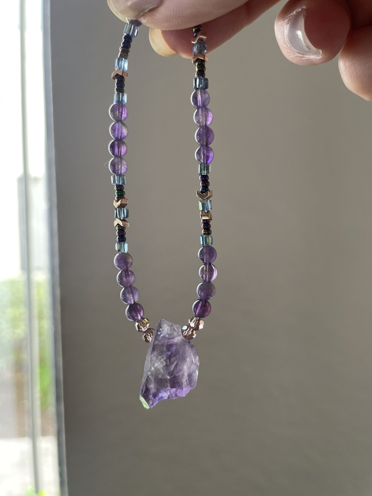 February birth stone, amethyst handmade beaded bracelet. Perfect birthday or Valentine’s Day gift. Comes with star and moon mesh pouch