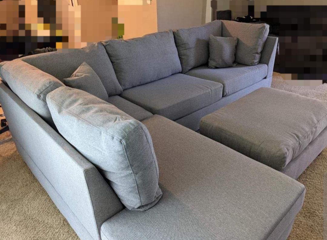 Brand new in 3 boxes Never opened Gray linen fabric set Sectional with reversible chaise and ottoman. Sectional measures 104”x75”x35”H. Delivery available for additional fee depending on your location