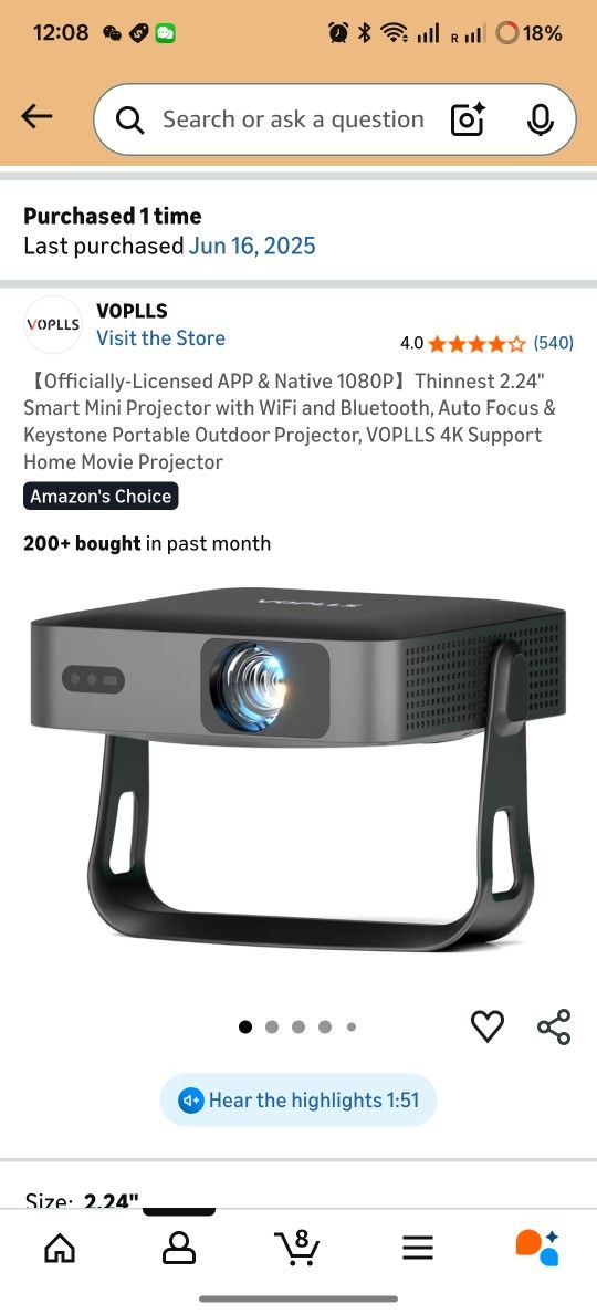 Officially-Licensed APP & Native 1080P】Thinnest 2.24" Smart Mini Projector with WiFi and Bluetooth, Auto Focus & Keystone Portable Outdoor Projector, VOPLLS 4K Support Home Movie Projector