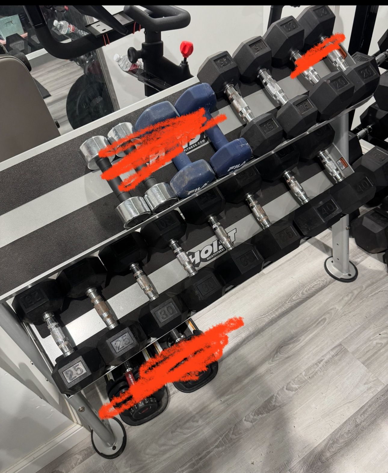 I have a heavy duty Hoist Rack with a set of hex end rubber dumbbells. Everything for $350 cash firm. If you just want the rack $180 cash If you want the dumbbells .90 pound on those. (The bowflex adjustable dumbbells and few others are already sold see list of what’s included) 1) pair 15 lbs black 1) pair 25 lbs black 1) pair 30 lbs black 1) pair 35 lbs black 1) pair 40 lbs black 1) Hoist Storage Rack