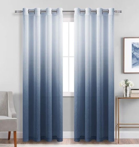 Blue Ombre Sheer Curtains Set Of 2 Panels Faux Linen Grommet Top Window Curtains 52 X 84 Two panels, Under a year old, so beautiful but we moved and need longer ones Smoke and pet free home. Pick up in Cortez Hill