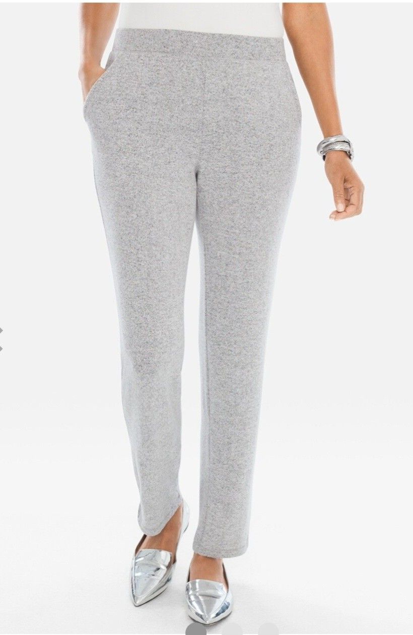 NEW Chico’s Zenergy Activewear Pants Chicos Sweatpants Gray Athleisure SIZE 1 in Chico’s sizes small in conventional size. When soft and cozy is what you're after, these pants deliver (without sacrificing fabulous style). They offer an easy, pull-on styling, front pockets and a smooth silhouette. Pull-on styling with elastic waist. Front pockets. Inseam: 28". Rayon, polyester and spandex. Machine wash. Imported.