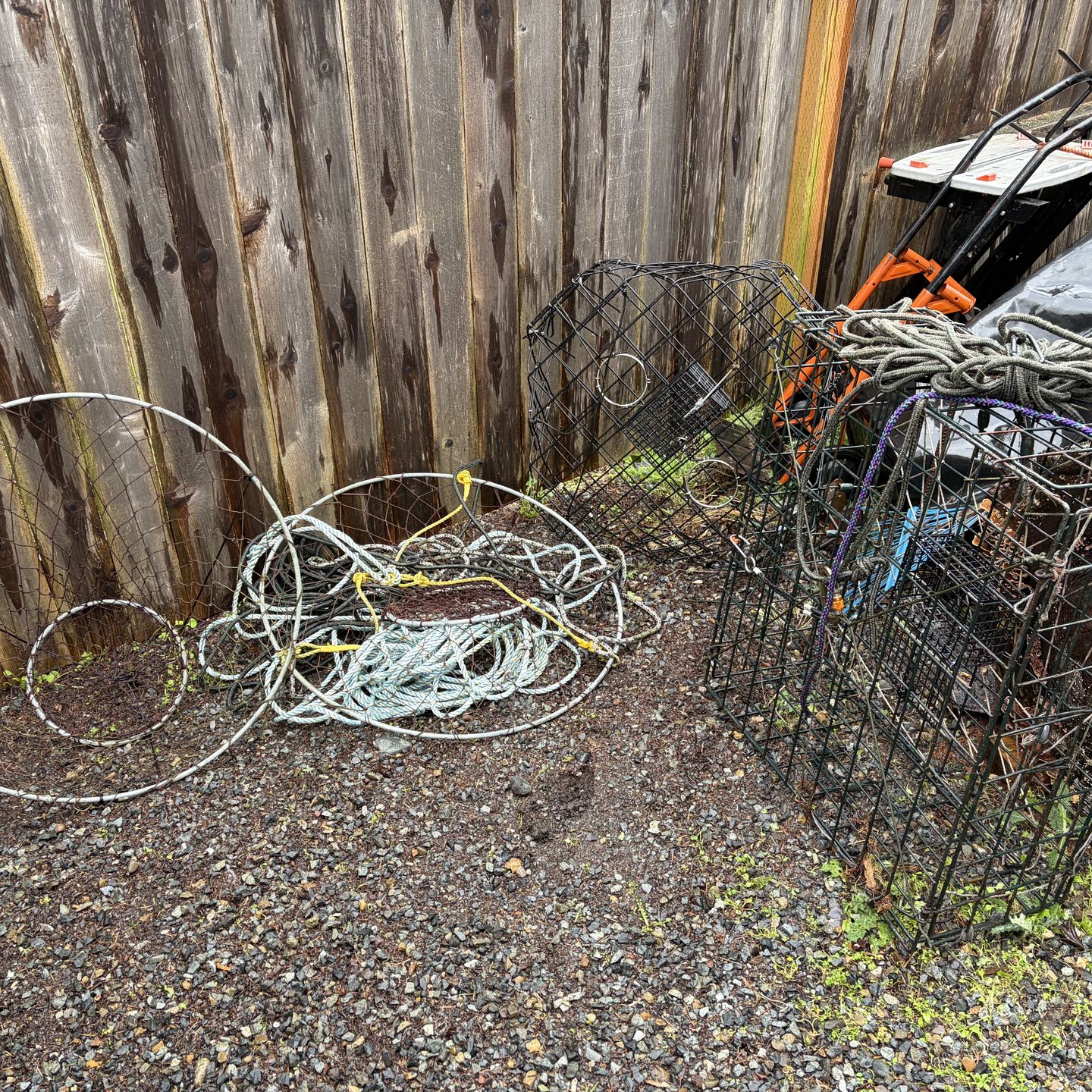 Crab pots and ring nets with rope
