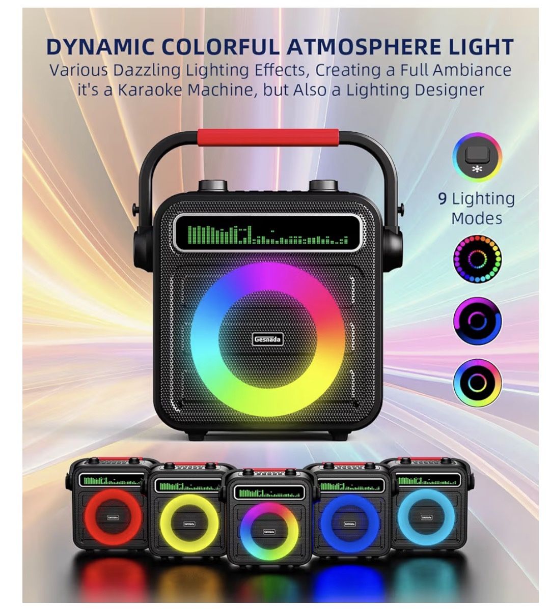 Karaoke Machine 2 Wireless Microphones, Portable Bluetooth Speaker w/PA System for Adults & Kids with LED Lights, Bass/Treble Adjustment, Supports REC/TWS/FM/AUX/USB/IF Card for Party