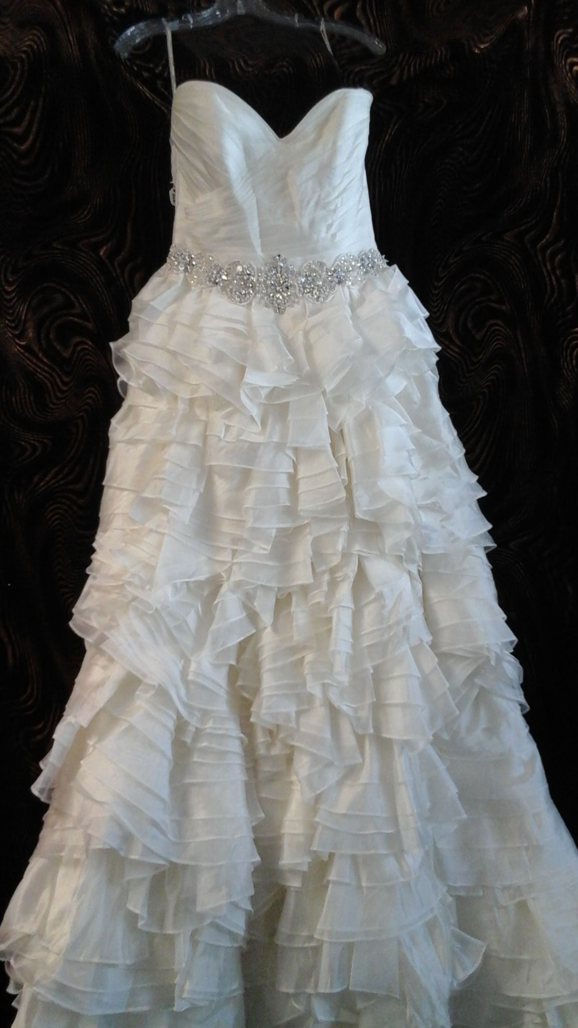 Beaded sash full skirt soft chiffon feel soft ivory size 6 to 8 corset back original retail price 2800