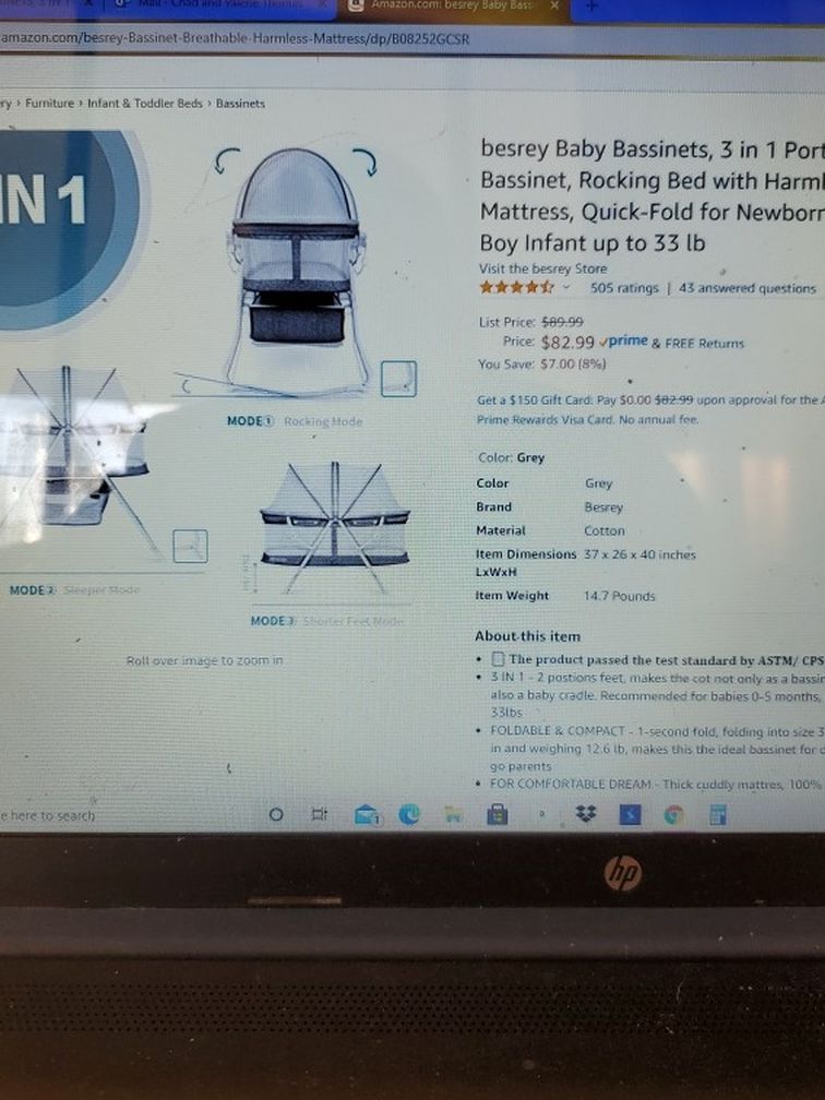 Used Once- BESREY BABY BASSINET, 3 In 1 Portable Bassinet Asking $35