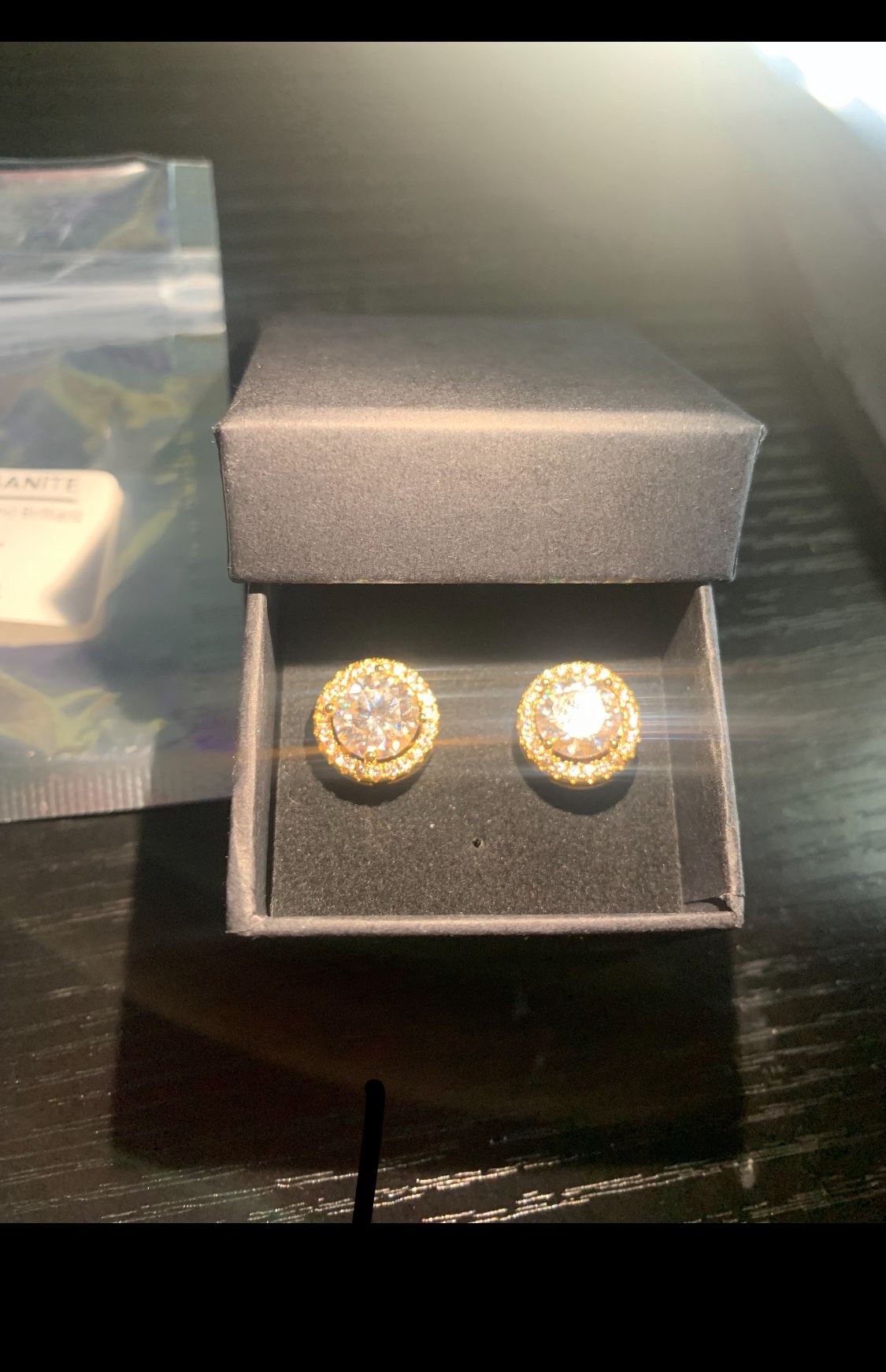 New gold 2ct diamond moissonite earrings looks amazing shines bright good gift or personal use can bring your own tester if you want