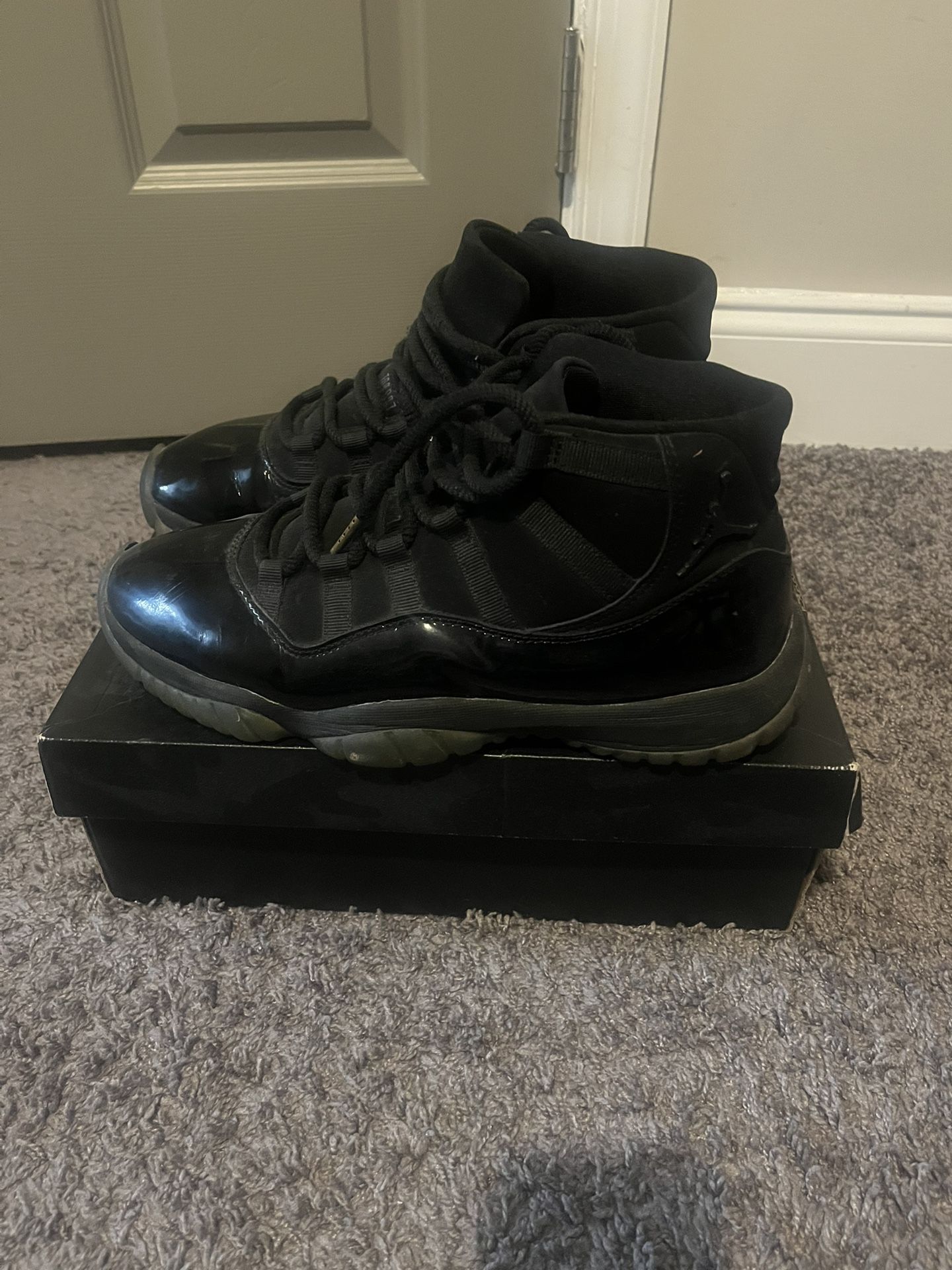 Clean and sleek, the Air Jordan 11 “Cap and Gown” features an all-black design with glossy patent leather, premium suede upper, and a translucent smoky outsole. Originally inspired by graduation season, this pair delivers a sharp, dress-up or dress-down look while keeping classic Jordan 11 comfort. Size 11 and perfect for collectors or everyday wear.
