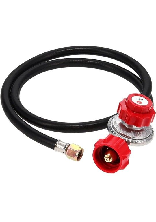 GasOne 2109-RED 4 ft High Pressure 0-20 PSI Adjustable Regulator with Red QCC-1 Type Hose-Works with Newer U.S. Propane Tanks