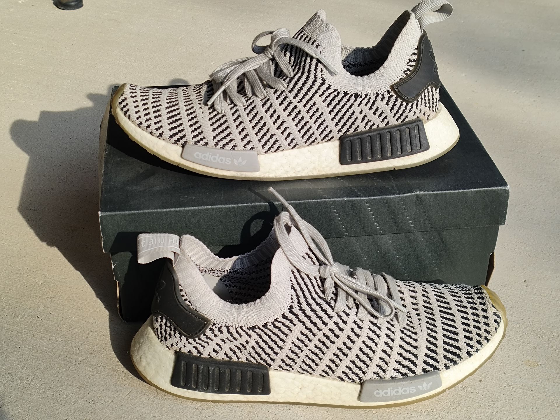 Mens size 9.5 Adidas NMT STLT Primeknit (Light Grey/Black/White)