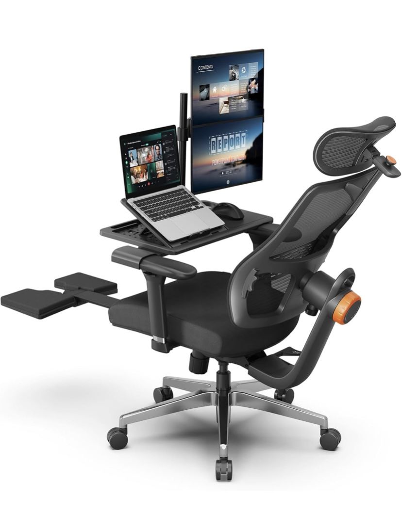 Newtral Ergonomic Home Office Chair-Office Desk Chair with Footrest, Auto-Following Backrest & Headrest, 4D Armrests, 96°-136° Recline (Black, with Laptop Table)
