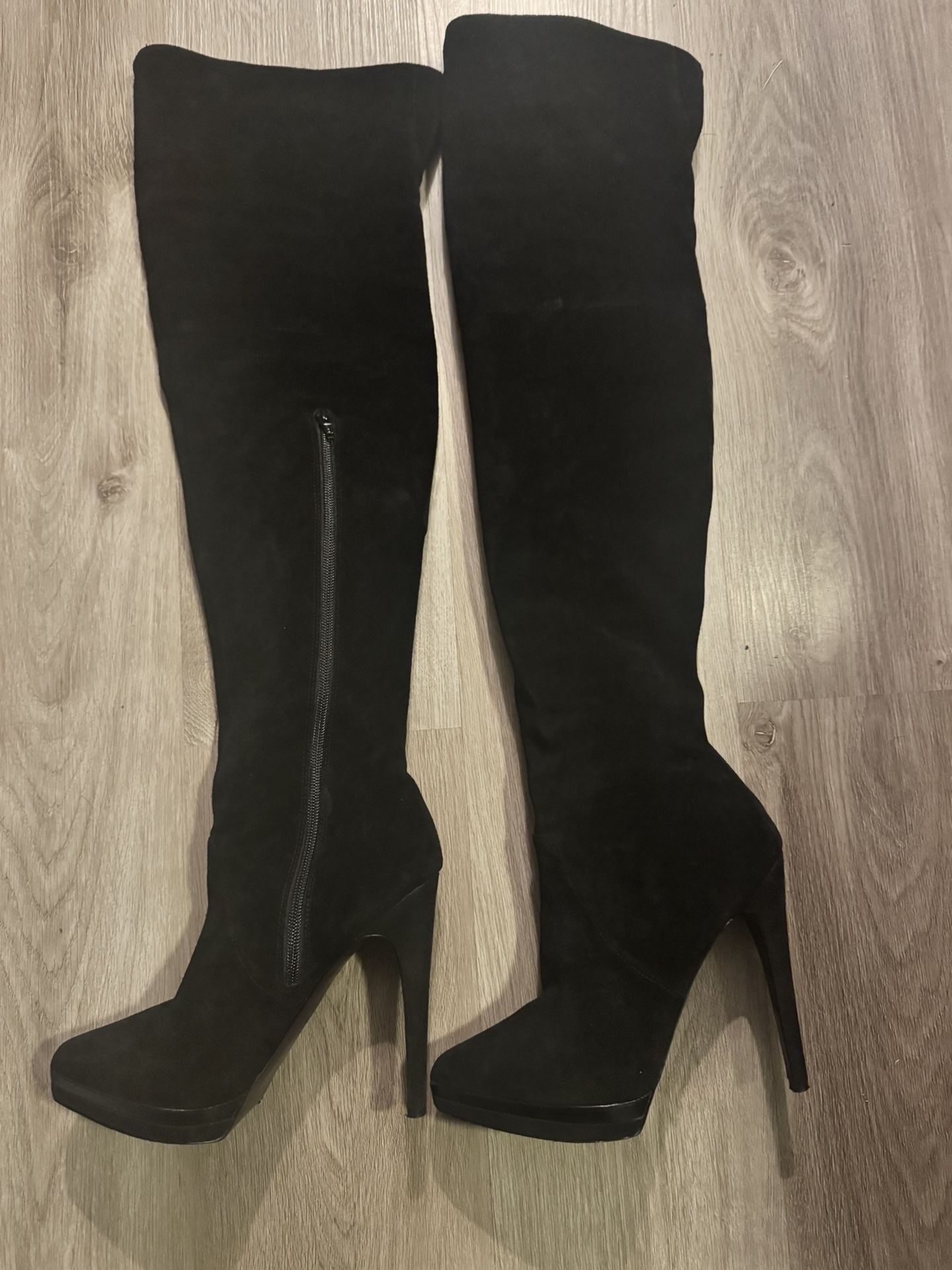 Black Suede Heeled Boot over the knee very cute size 8.5 great condition Cost over $250