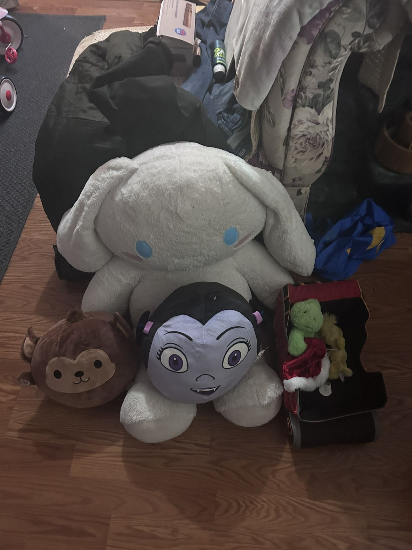 Selling individual plush toys. Prices listed below — bundle discounts available. Available: • Sanrio Cinnamoroll Jumbo Plush – $25 Large, super soft, great condition • Disney Vampirina Plush – $10 Clean, good condition • Build-A-Bear Black Bear Plush – $15 Authentic BAB (paw tag), good condition • Small Monkey Plush – $5 Condition: All plush are clean and in good used condition. No rips or stains. Deals: Take all for $45 Pickup: Local pickup Cash preferred