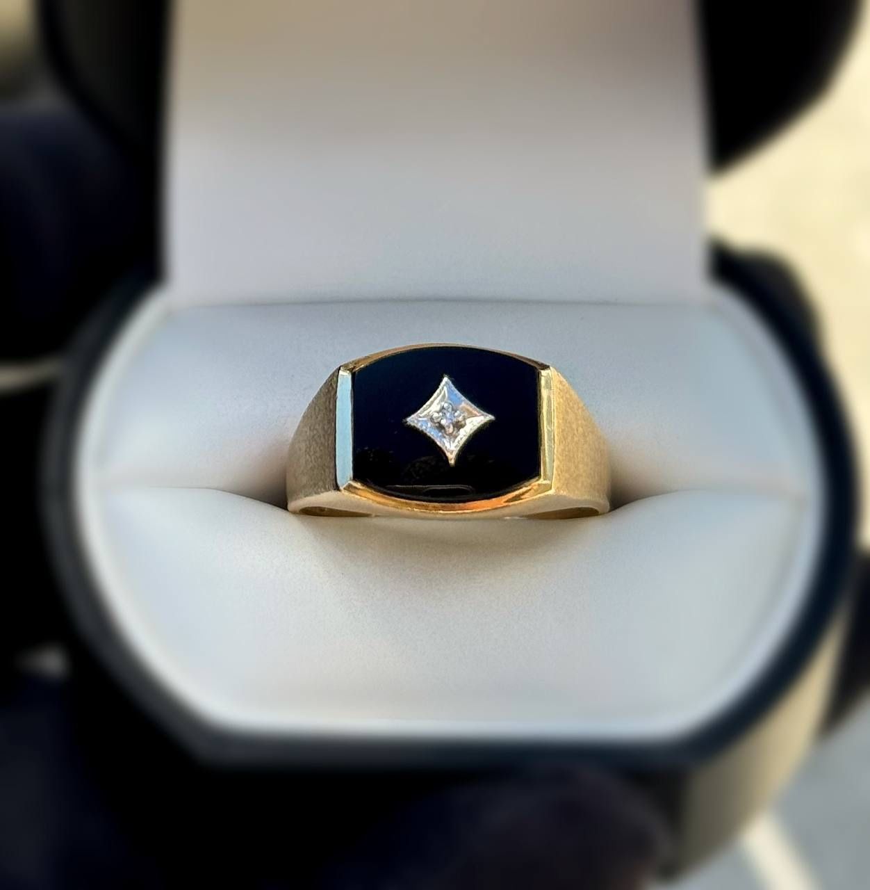 This gorgeous onyx stone natural diamonds ring is made of 10k solid yellow gold. Total weight: 6.90 grams. Carat weight of onyx stone is 3.00CT. βοΈππ. Total carat weight of the natural diamonds is 0.01CTW. πππ₯ΆIt is very beautiful piece. looks very gorgeous π₯ Perfect gift! β€οΈππ We buy Rolex and Audemars, patek . Do layaway in VIP PAWN Coral Springs π₯ππΈ