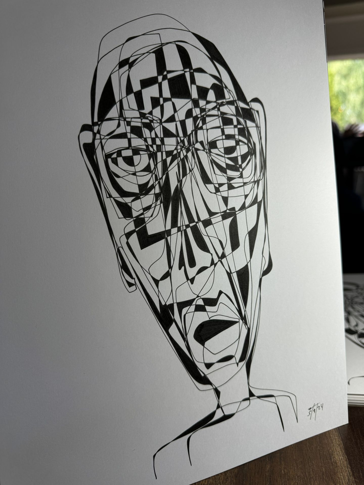 Original continuous line ink drawing by Seattle native/visual artist Matt LaCross. Foundation created by hand, from a single line of ink, and then meticulously filled. More drawings available on Instagram at mattlacross 9” x 12” Archival Ink/Paper
