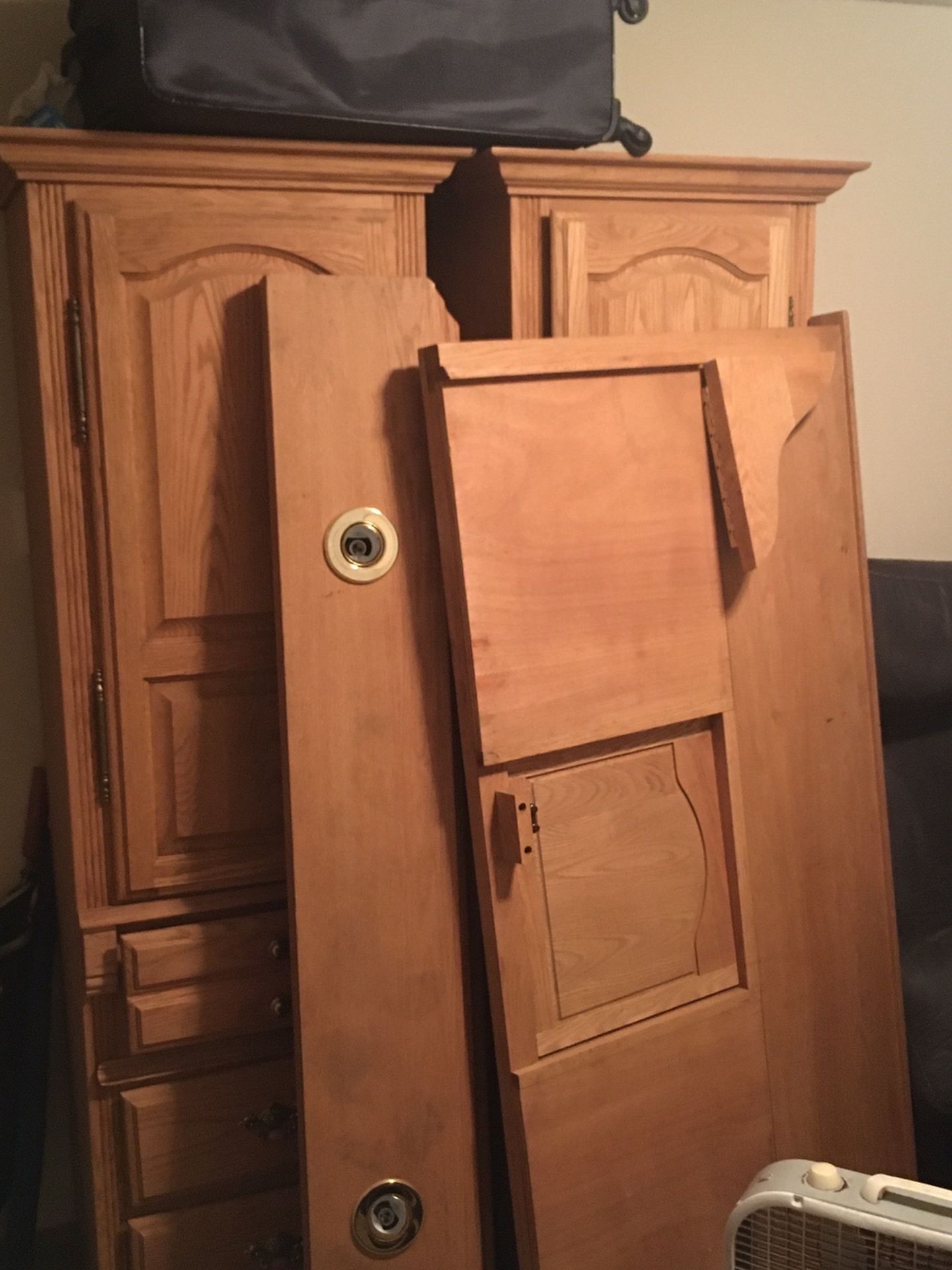 I have a queen size bed frame head board storage wall frame (wall frame only)...drawer tower not sure what wood it is, but it is quality built and very heavy...would need at least 3 people to haul it out.