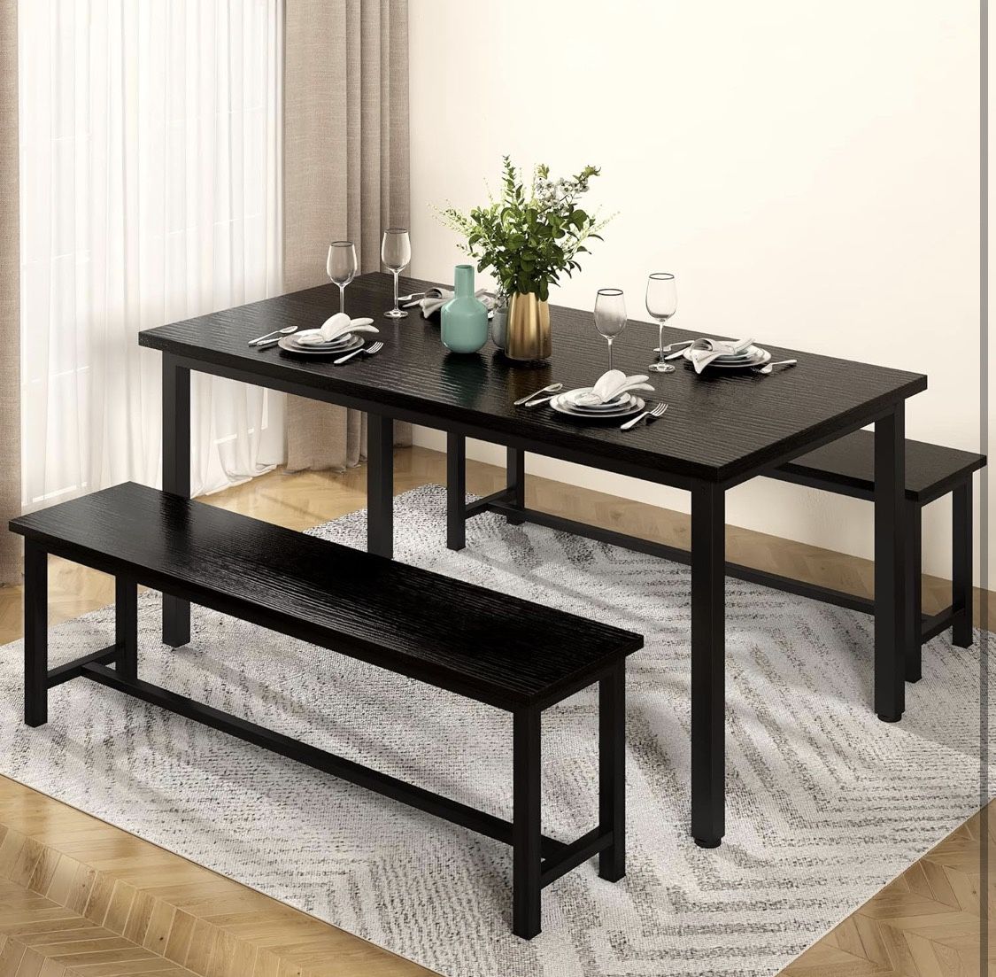 Dining table set for 4, 47.2-inch kitchen table with 2 benches, 3-piece farmhouse dining table set, space-saving dining set for kitchen, dining room, apartment, frame Brand new I can do delivery with an extra gas I invite you to see the entire list of items I sell Hablo Español S26BW