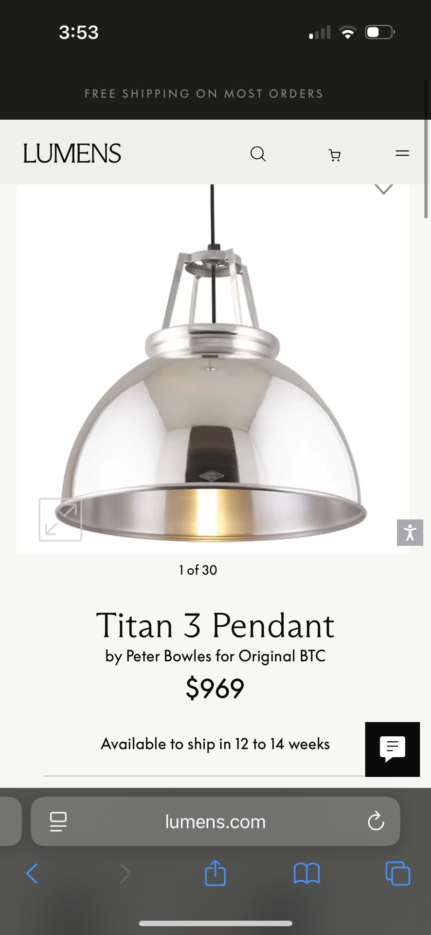 Titan 3 Pendant Light - Designer Lighting $969 New PRODUCT DESCRIPTION: The Original BTC lighting Titan 3 Pendant updates a classic 1940s industrial design with a hand-spun metal shade exclusively crafted in metal workshops of central England. The hard shell is either left in a lightly polished, natural aluminum state or painted, shielding a highly reflective interior which optimizes the amount of down light. Each variation has an open hatch topped with a raw aluminum cage, also spilling light above. The Aluminum finish includes a gridded, etched glass bottom diffuser (or ‘visor’), which will soften the strong task light below. About the Brand Founded in 1990 by Peter Bowles, Original BTC is a lighting company rooted in national pride, manufacturing classic and industrial British design for contemporary homes. Encouraging local enterprise, all products are exclusively produced in the UK, utilizing factories in Oxford, Birmingham and Stoke-on-Trent to hand-produce and assemble the fine bone china, aluminum and lighting components used in Original BTC fixtures. In 2010, Bowles acquired Davey Lighting (a heritage brand founded in 1885 as a maritime lighting supplier) enriching the brand with industrial-grade designs and traditional craftsmanship. Details Designed by Peter Bowles in 2014 Etched glass diffuser options fully enclose the base of the shade Field-cuttable suspension cord Chrome canopy Based on a 1940s design Material: Aluminum Shade Material: Aluminum Dimmable: No Dimmer Not Included Dimmer Type: Aluminum Lighting Style: Soft/Diffused/Ambient Location Rating: UL Listed Eco-Friendly Packaging: This design is shipped using recycled, recyclable or limited packaging materials to reduce waste and carbon footprint. Made In UK Lighting Lamp Type LED Total Lumens 800.0 # of Bulbs 1 (Not Included) Bulb Type 9W G40 E26 Volts 120 Color Temp 2700 (Warm) Average Lifespan (Hours) 15,000 CRI 90 Equivalent Halogen, CFL or LED Bulb Can Be Used Yes Dimensions Canopy: Height 2.17", Diameter 5.1" Fixture: Height 16.7", Diameter 17.9", Weight 3.53Lbs Maximum Hanging: Length Adjustable From 21.7", Adjustable To 76.9" Similar to craftsman, farm style, modern, lumens, eco-friendly, restoration hardware, pottery barn.