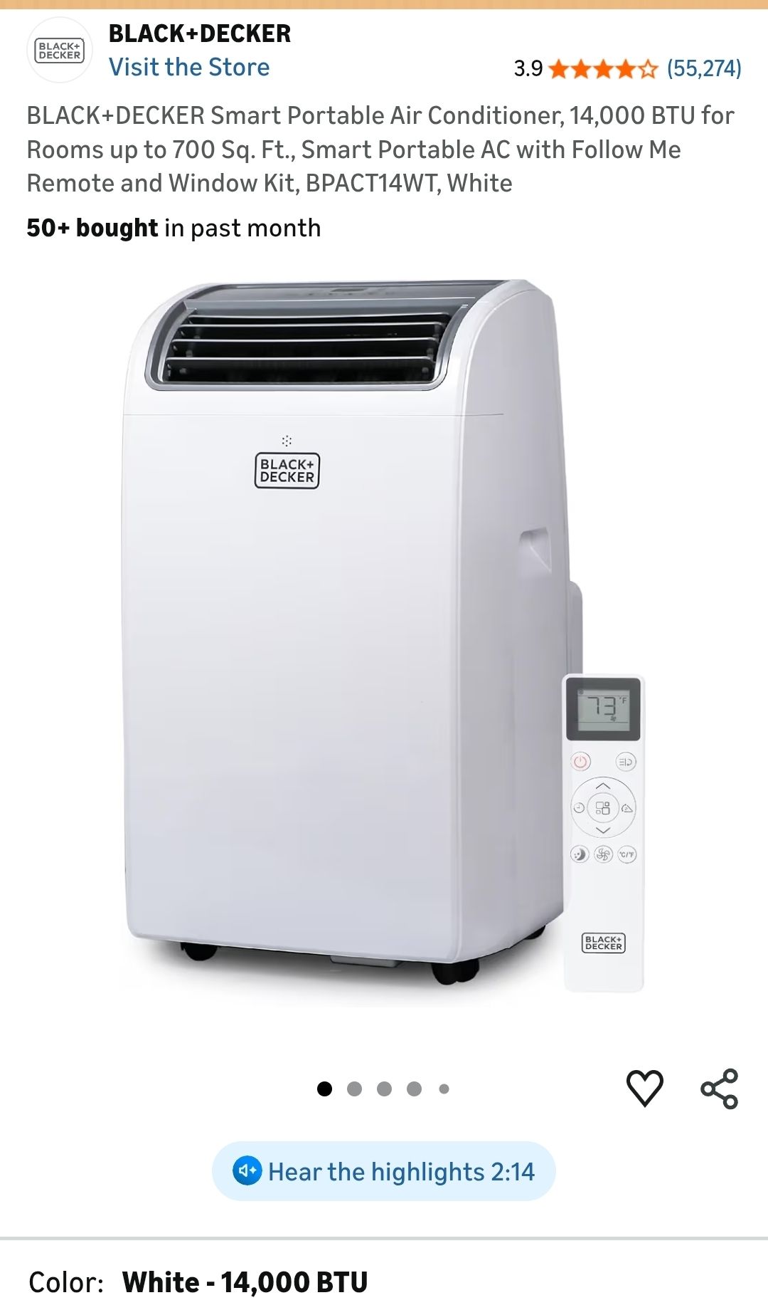 Brand New Factory Sealed in the Box 📦 Retails around $600 BLACK+DECKER Smart Portable Air Conditioner, 14,000 BTU for Rooms up to 700 Sq. Ft., Smart Portable AC with Follow Me Remote and Window Kit, BPACT14WT, White