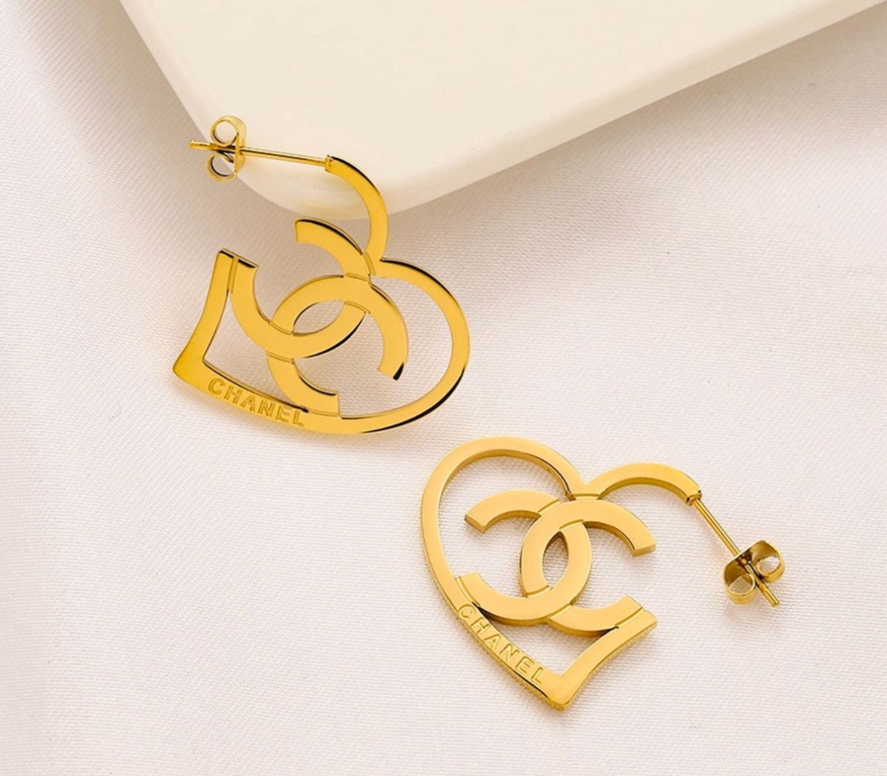 CC Heart Shaped Hoop Gold Earrings