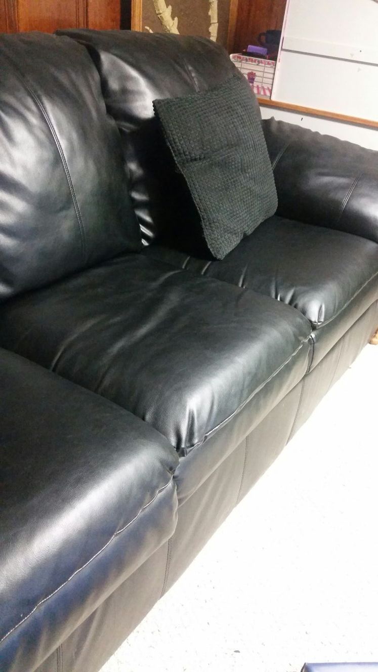 Black couch. Still nice and fluffy no worn out cushions. Has a small rip shown in pic on the right arm. I'm moving and need it gone ASAP. OBO.
