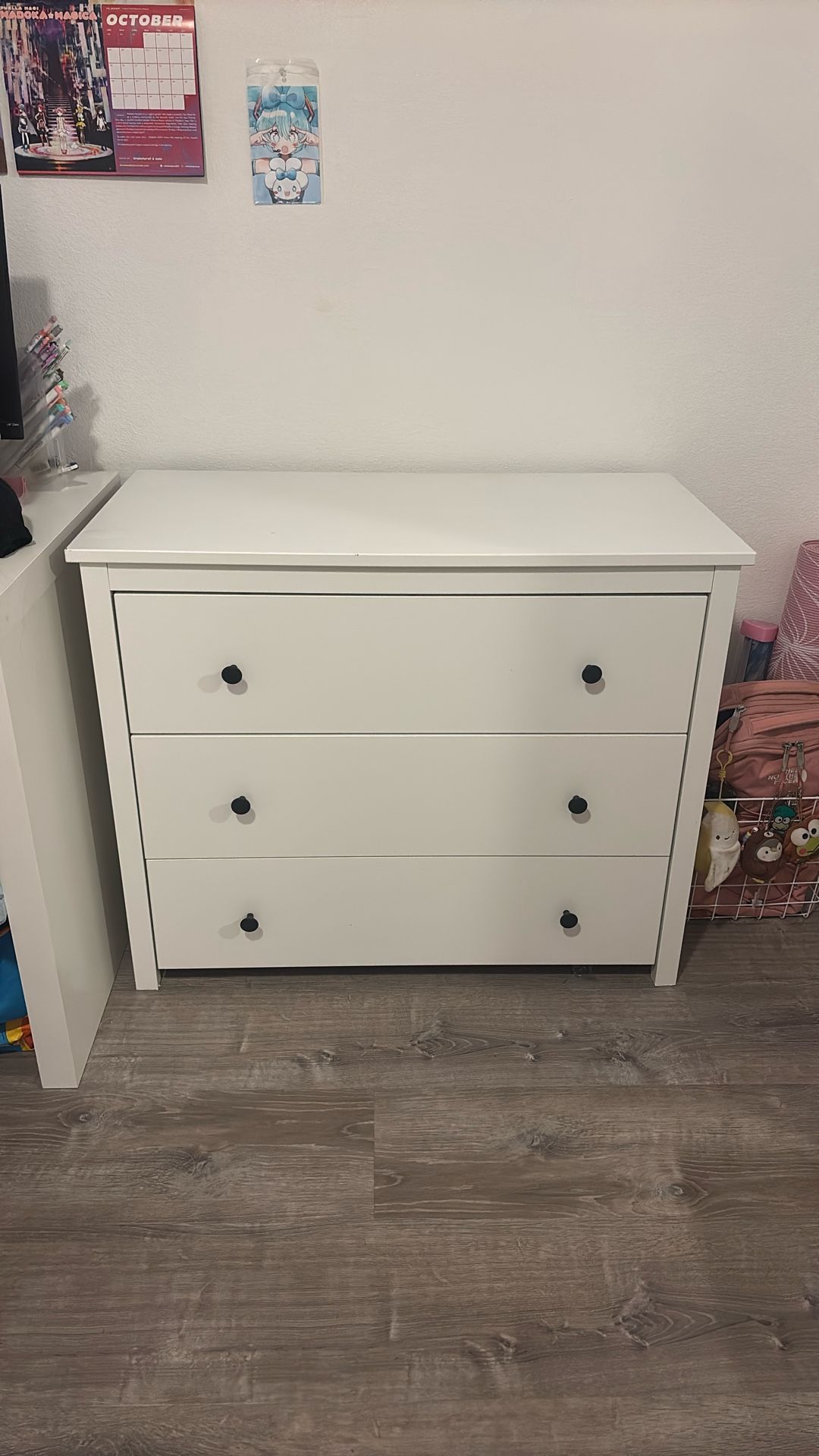 White drawer with deep storage, black spots can be wiped off, all drawer open and shut easily