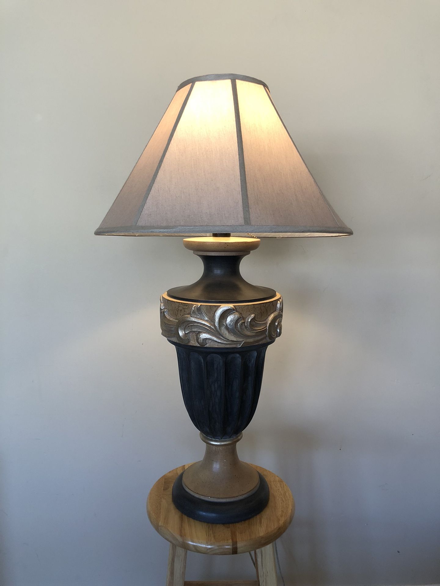 Large Table Lamp Includes light tan lamp shade 34” tall, 8.5” base diameter
