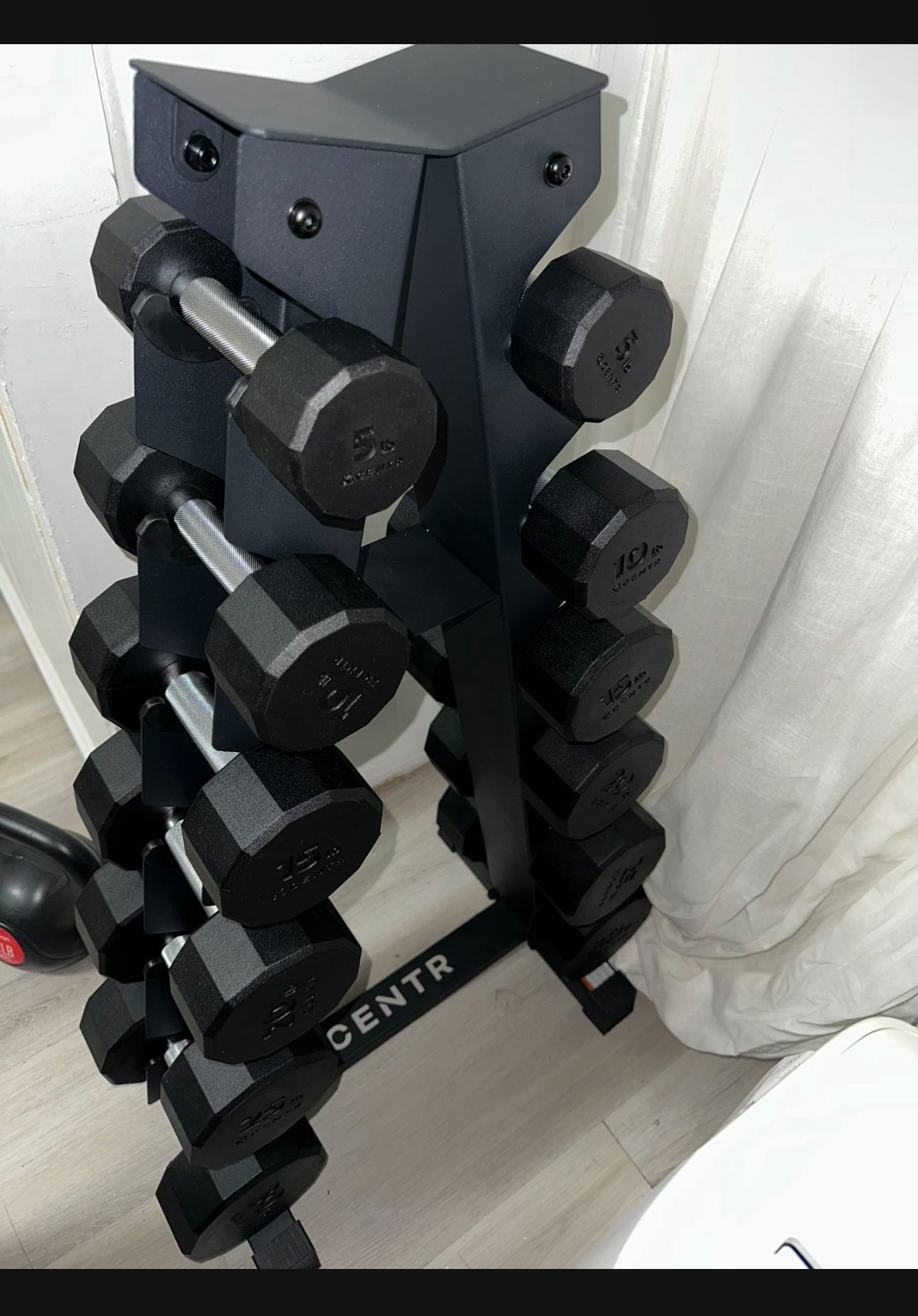 CENTR 5-30 LB DUMBBELL WEIGHT SET WITH RACK New !!!! Open box but never used Price not negotiable Cash only please