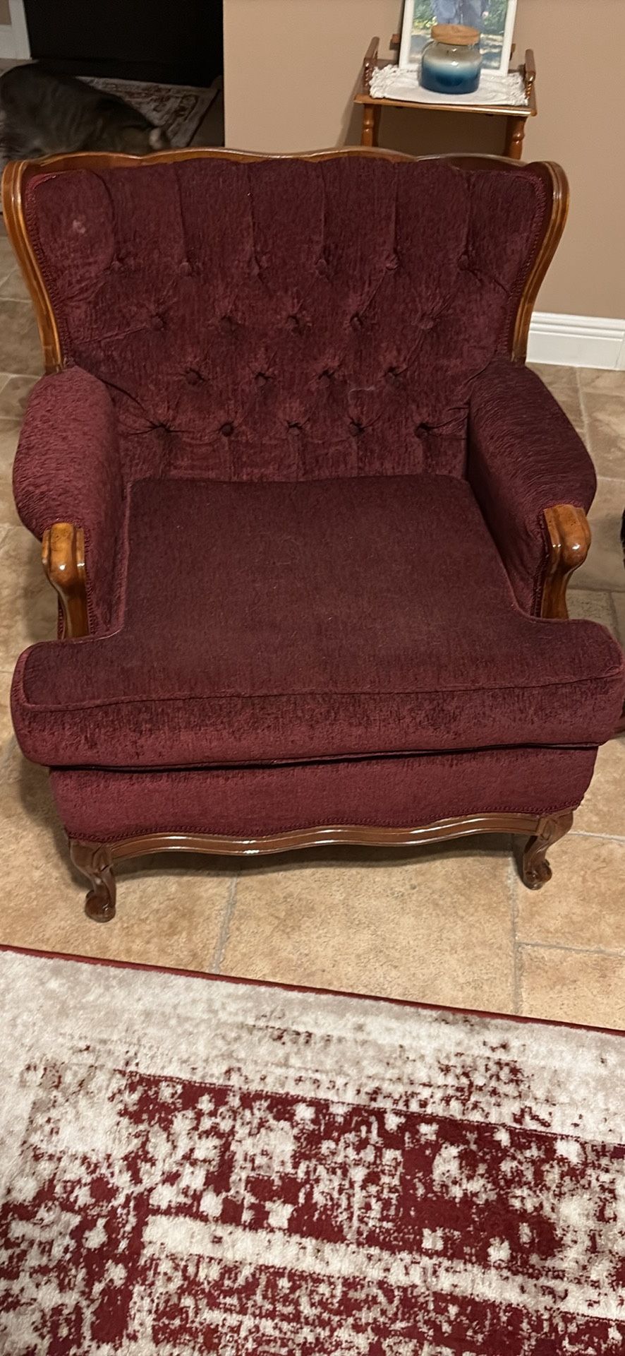 Vintage Tufted Merlot Velvet Matching Couch & Chair