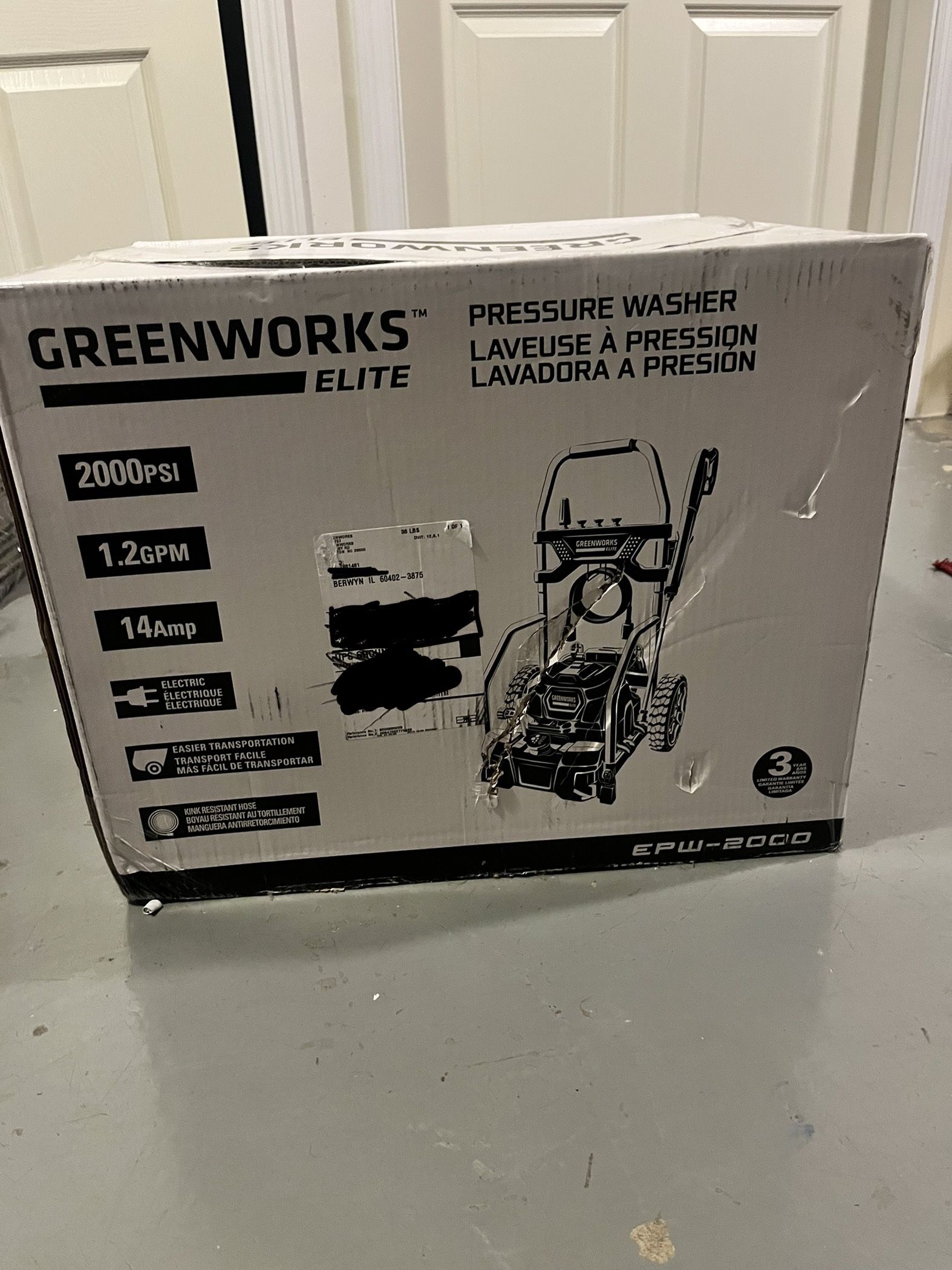 Brand new never opened GreenWorks Pressure washer. Pickup only South Berwyn area, message for more questions/details. -2000psi -1.2GPM -14Amp -Electric