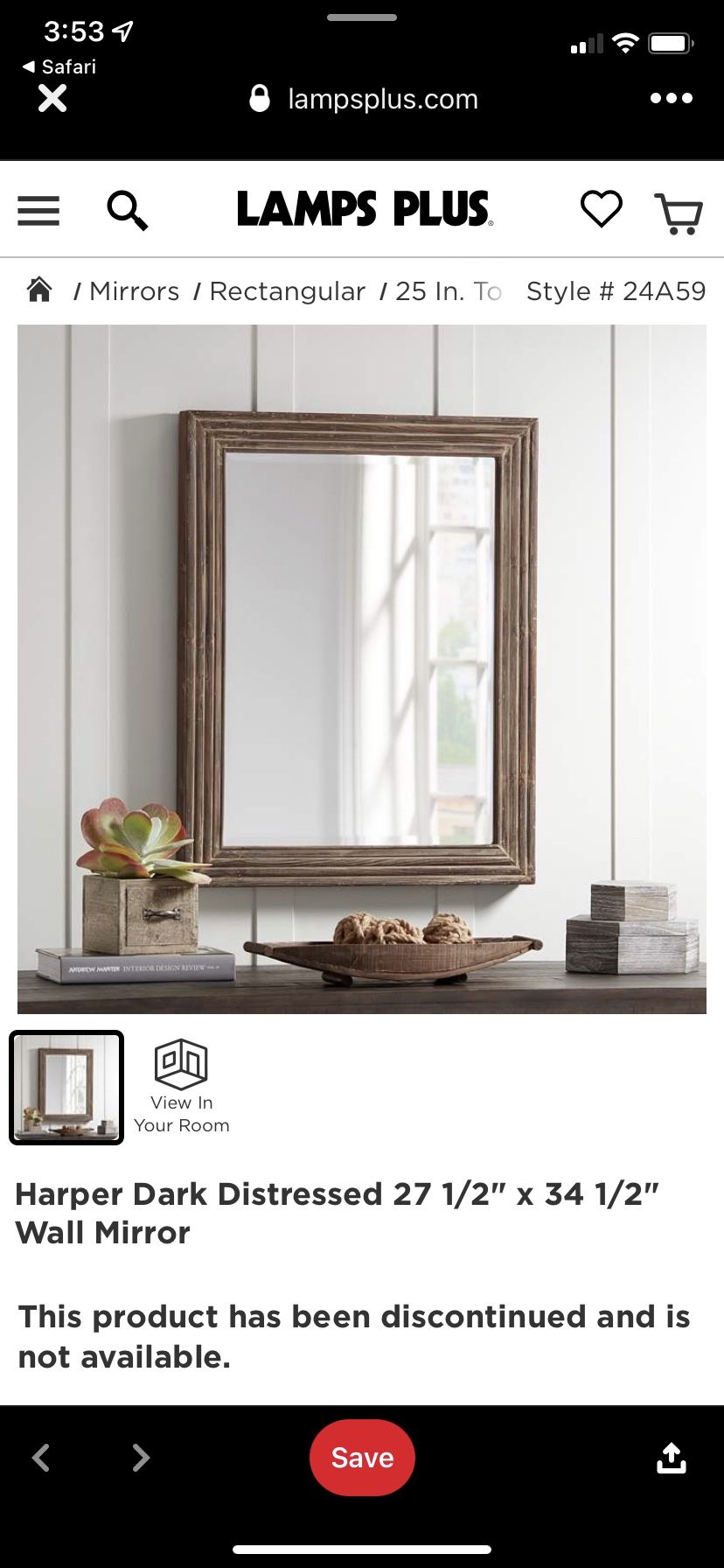 30” Gold Round Mirror - $75 Lamps Plus Mirror - $75 -see photos for dimensions - has d rings to hang vertically or horizontally - has patched damage on top side (when hung horizontally) purchased from lamps plus with repair Rustic hanging mirror with vegan leather strap - $10