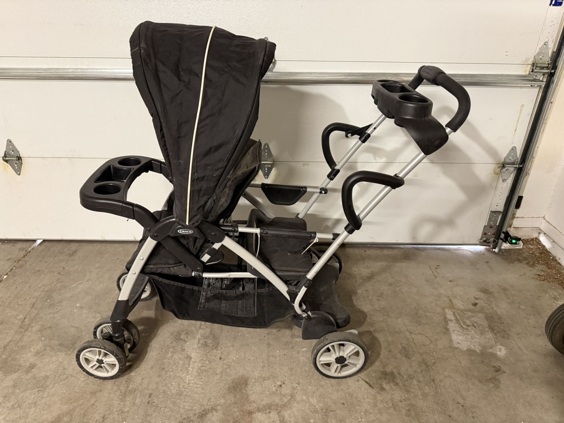 Graco stroller and infant car seat combo in good working condition. Includes: - Stroller with cup holders and storage basket - Infant car seat (SnugRide style) Condition: - Clean and fully functional - Normal wear from use (see photos) - Wheels roll smoothly, folds easily Great affordable option for new parents. Pickup only.
