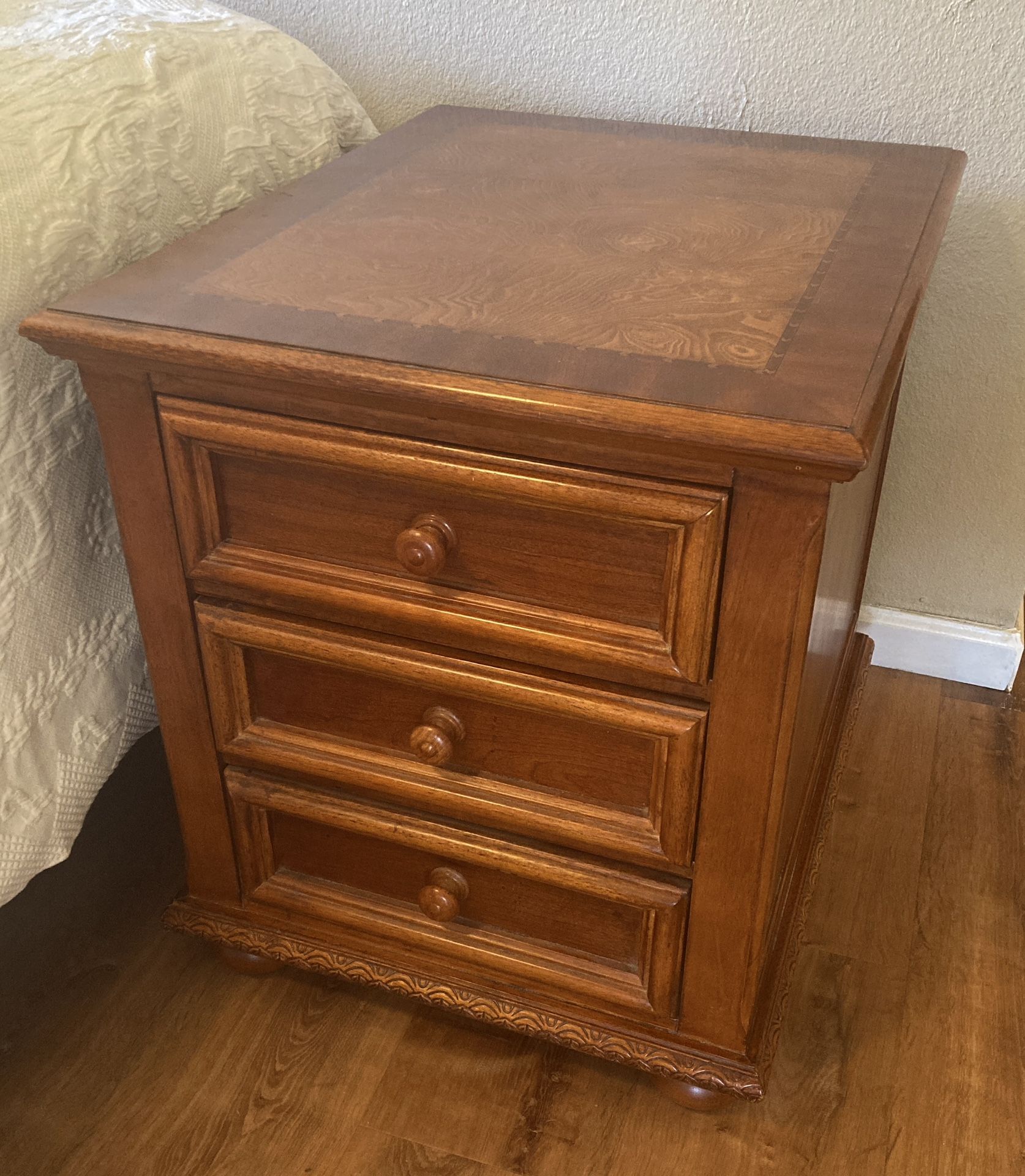Quality Solid Wood Inlay Nightstand Bedstand Side Table Bed Stand Bedroom Dresser 3 Drawers