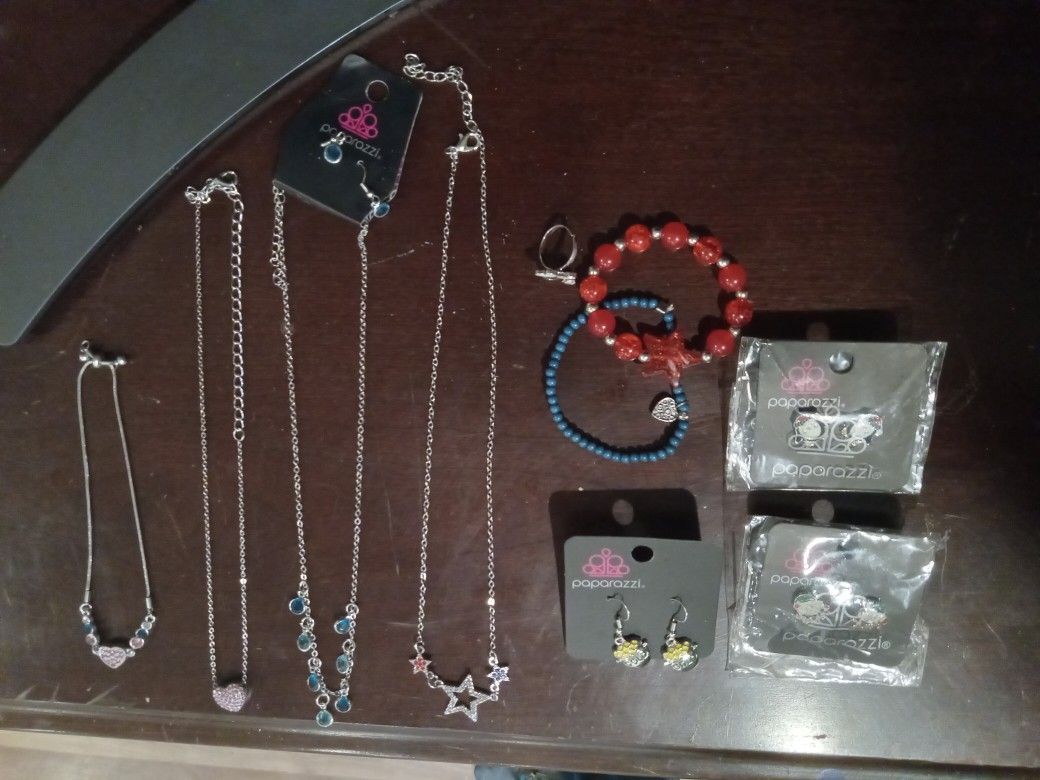10 Piece Lot Paparazzi Girl's Fashion Jewelry. For ages 14 and up. All new or barely used Fashion Jewelry. You get what's shown in the pics. 4 necklaces. 2 stretch bracelets. 3 earrings. 1 ring. Very cute pieces. Perfect as gifts.