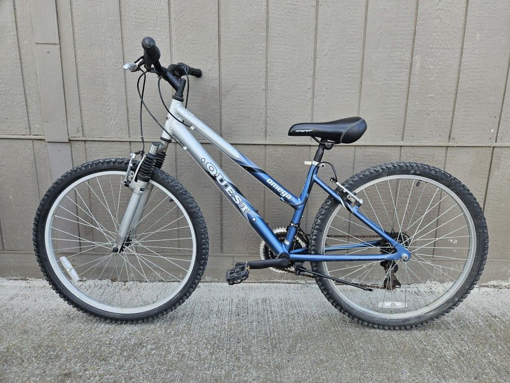 Quest Omega 26" 21-Speed Hybrid Road / Mountain Bike - Front Shocks - Light 16" Frame - Tuned! + NEW Tubes (MSRP $300) This is a fun Quest 26-in 21 speed hybrid mountain and road bike that's ready to go! Has front suspension that makes it more comfortable and safe and I have it tuned to hit all the gears and strong brakes and new tubes! Has a light 16-in aluminum frame good for riders 4.10 to 5.8 ft tall and great for adults or kids that need something reliable and ready! Overall looks great with only minor signs of wear and oiled and tuned and ready to ride!