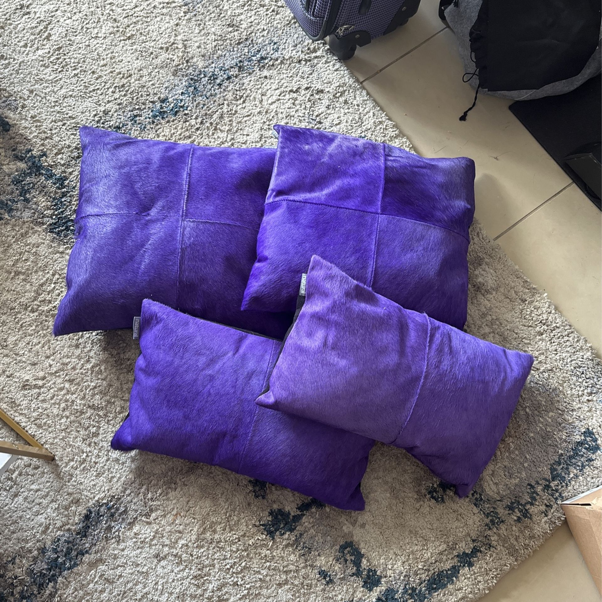 4 piece real cow hide pillows purple hair black suede