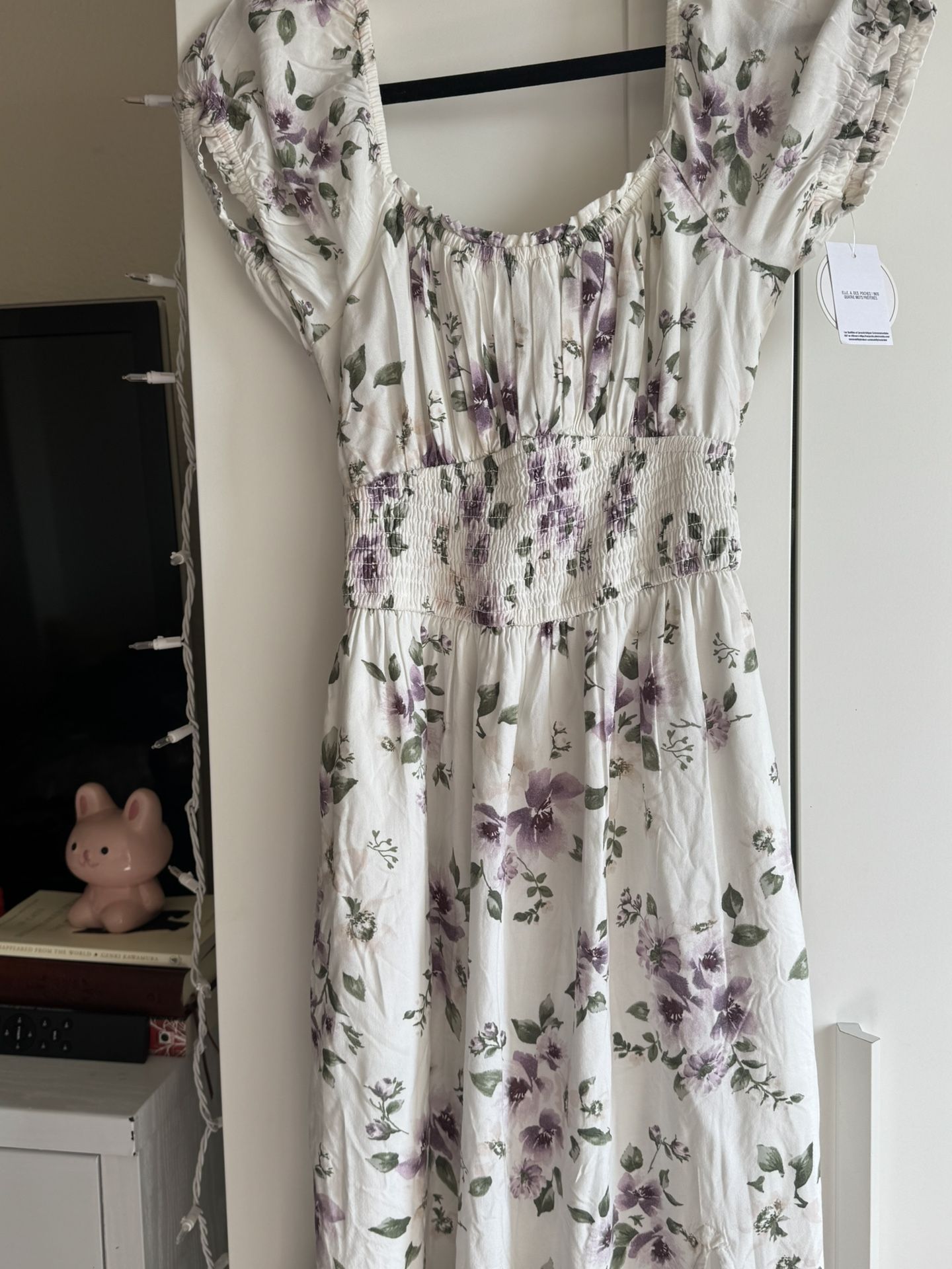 Hollister size S. They are known for there stretchy fabric and it’s a maxi dress with a slit. I included a different dress from the website to show you how it’d look like on. Tags are still on.