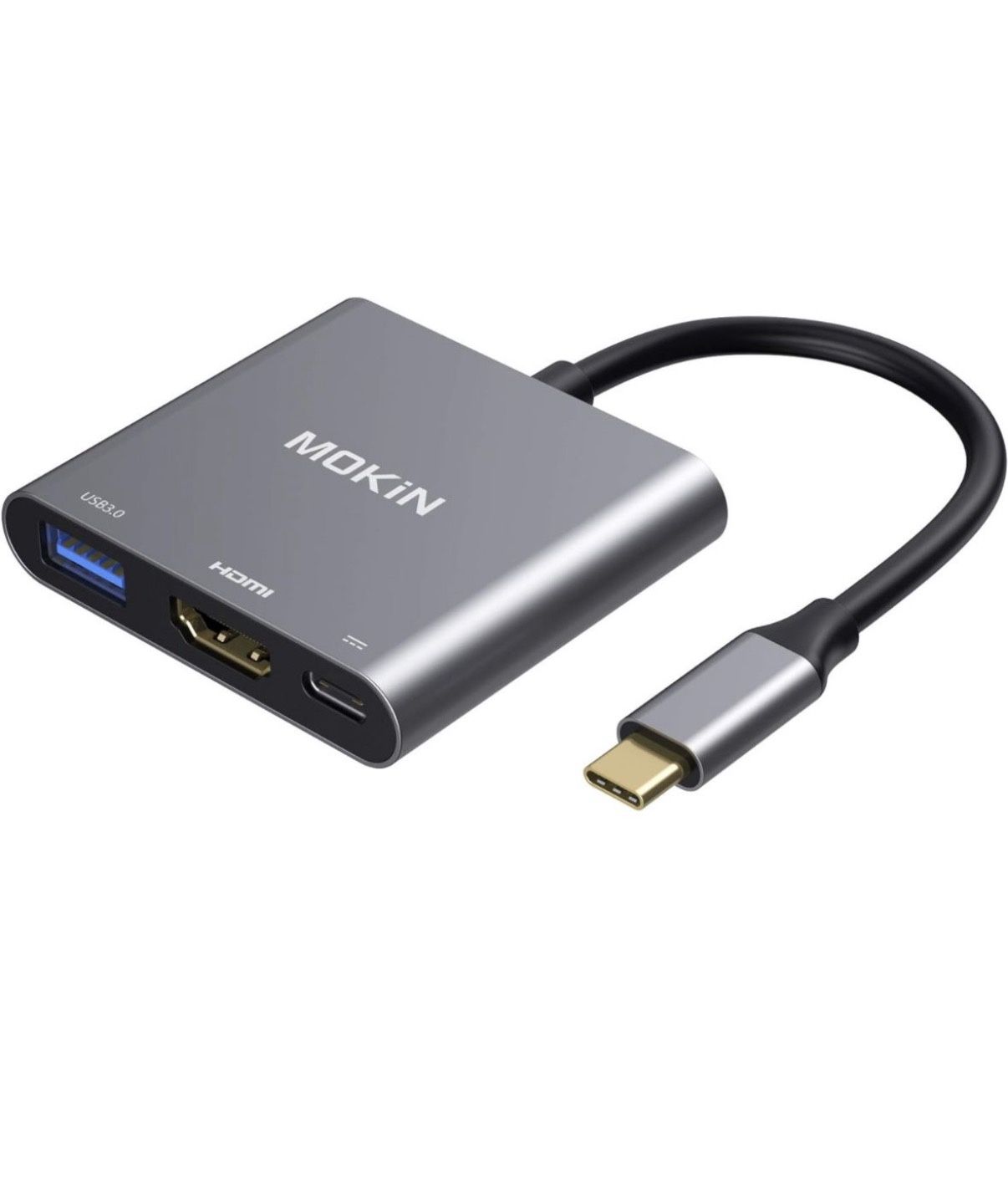 Top Highlights Compatible Devices Laptop, PC, Cellular Phones Specific Uses For Product Monitor,Projector Connector Type USB Type C, HDMI Color Silver Item dimensions L x W x H 4.2 x 3 x 0.3 inches Brand MOKiN 【3-in-1 Multiport USB C Adapter】Expand your USB Type-C Port to a USB 3.0 port, a HDMI 4K output port and a USB-C charging port. Three ports can work at the same time. You can connect a USB C Thunderbolt 3-equipped PC or laptop to a HDMI display while connecting a standard USB device and charging your usb c devices at the same time 【 4K Video USB-C To HDMI Adapter】 Mirror or extend your screen with USB C Hub HDMI port and directly stream 4K UHD @ 30Hz or Full HD 1080p video to HDTV, monitor or projector 【 Super Speed USB 3.0 Ports(At Full-Speed)】Allow you to connect keyboard, mouse, hard drive,etc to MacBook Pro,Up to 5Gbps data transmission speed, down compatible with USB A 2.0 and below. Because HDD/SDD needs more power, so this adapter only allow connect 1 HDD/SSD and this adapter won't support Apple USB Super Drive 【Wide Compatible】 MOKiN USB C HDMI adapter compatible with Macbook 2020/2019/2015/16/17/18,MacBook Pro 2020/2019,Macbook Air2020/2019/2018, Ipad Pro 2020/2019, Samsung Galaxy S10/S9/S8, Samsung Note 10, Note9, Note8, Surface Book 2,Dell XPS 12/13/15,Acer Spin7, Acer Chromebook R13, Lenovo 900/910,Google Chromebook Pixel, HP Spectre X2/X360/Elitebook Folio G1/X2 etc. 【USB C Power Delivery】With 60W Charging USB C port, you can charge your usb c laptops/tablets/phones when you using other ports. Expecially if your usb c devices only have 1 usb c port.