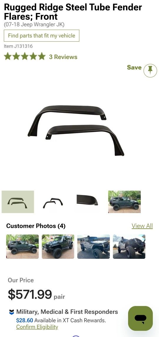 Brand New never removed from box just opened to check. Black metal with hardware. They are the front fenders only. Pictures of the fenders on Xtreme Terrain's site as of Feb 8th 2026 for$571 plus tax... So over$600. Save over$250 Cash only Pick-up only meet Cactus Rd and Cave Creek Rd. Tags: Jeep Wrangler JK JKU Off Road 4x4