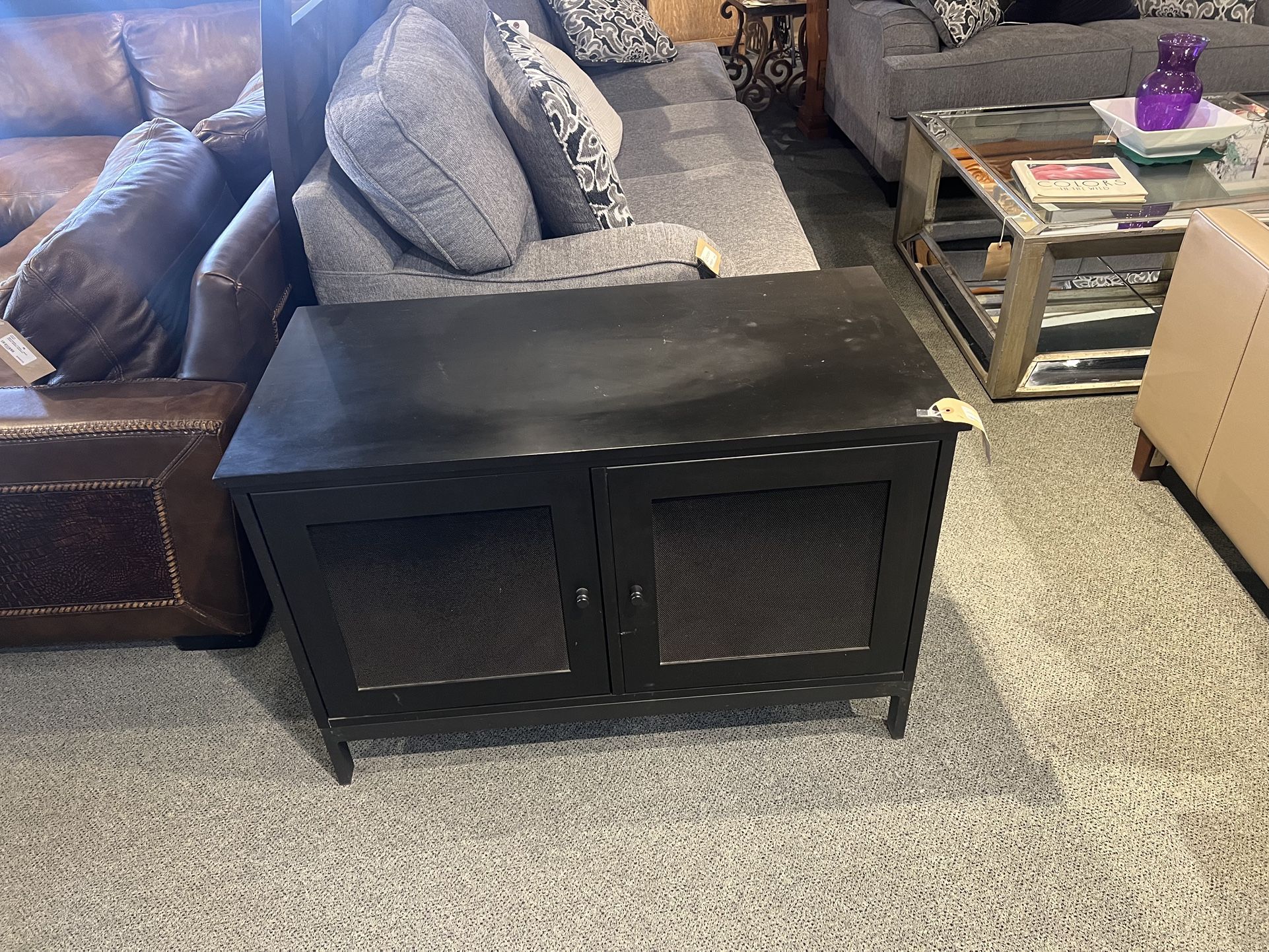 Cabinet: Black Cabinet w/ 2 Doors & a Middle Shelf Inside SKU PY28YR