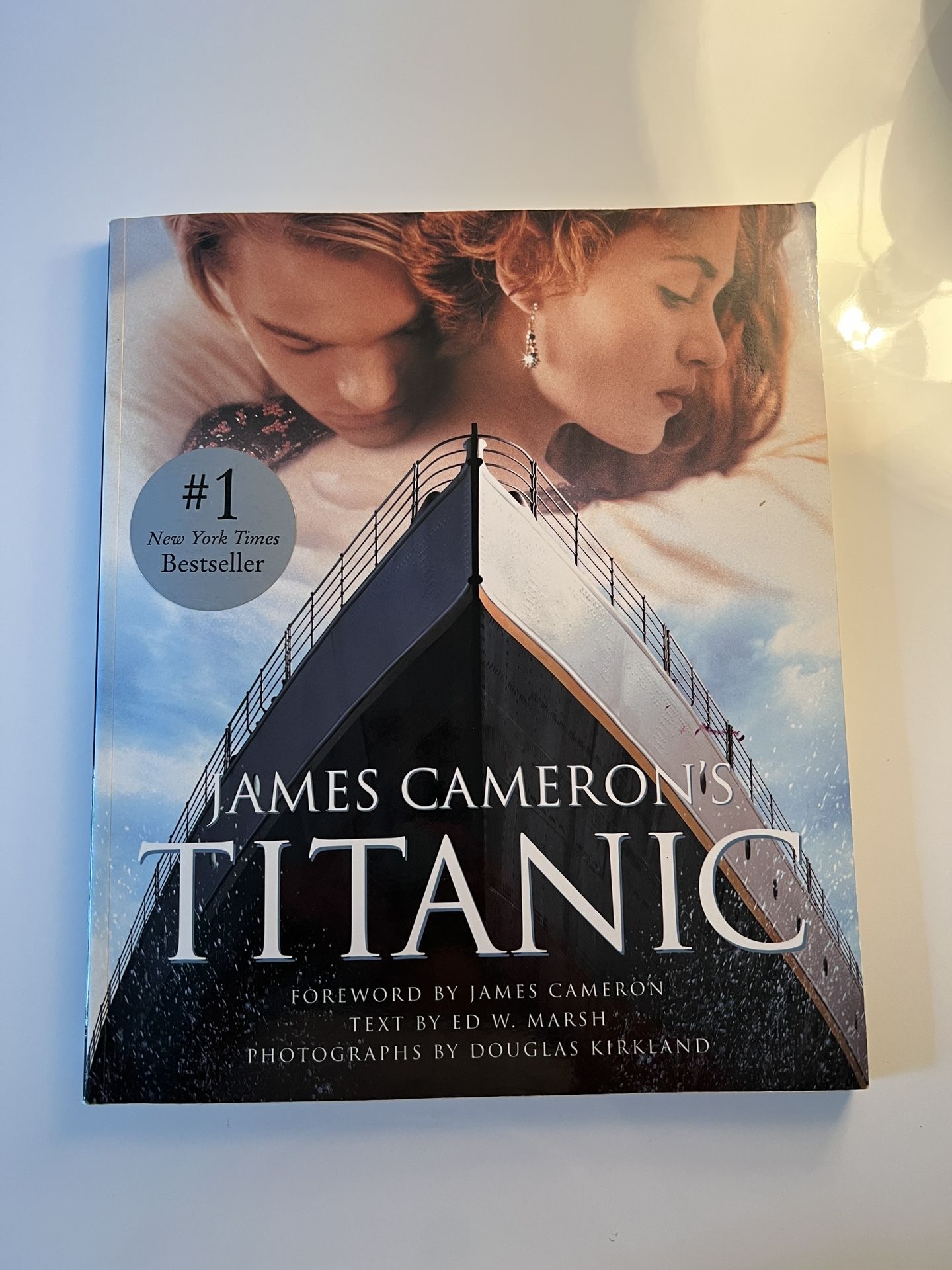 Perfect condition and great for all the Titanic collectors or just in general curiosity of how the movie was filmed! Great pictures and illustrations inside! Here is the book description…. "James Cameron's Titanic" chronicles the cinematic re-creation of the most legendary ocean disaster of all time as seen through the eyes of a master storyteller. Set against the ship's fateful maiden voyage, Cameron's much-anticipated motion picture epic weaves a rich human tapestry of romance, heroism, tragedy and greed. Within these pages is a detailed look at the monumental effort by thousands of artists and craftsmen to accurately re-create the 'ship of dreams, ' including the full-size exterior replica of the ship and the 17-million-gallon tank facility designed to sink her; a wealth of detailed interior spaces; new discoveries from Cameron's 1995 dives to the wreck, some two-and-a-half miles below the ocean surface; studies of the ornate wardrobe, makeup and hairstyles that defined the look of the 'Gilded Age'; an overview of the film's groundbreaking visual-effects work; and in-depth interviews with cast and crew, all referenced to the historic events of the Titanic's maiden, and final, voyage.