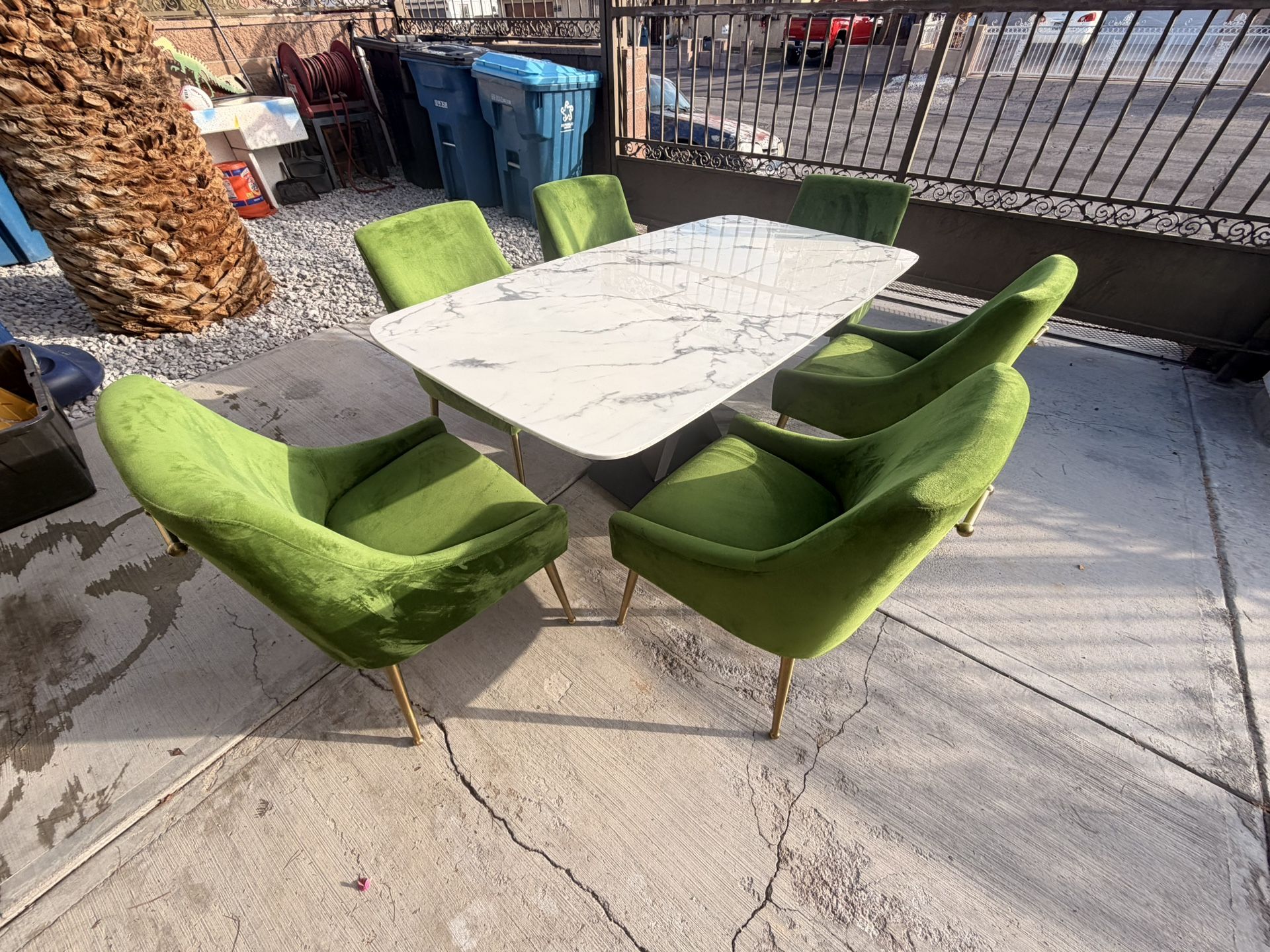 White Dining Table With Green Velvet Chairs