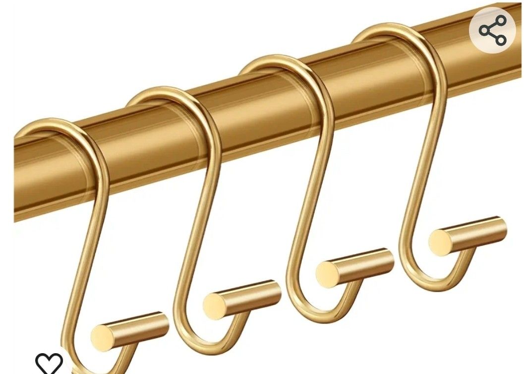 Gold Shower Curtain Hooks Rings , Decorative Rings for Bathroom Rod , Set of 12 Premium Rust-Resistant Metal Hangers T Shaped Design…