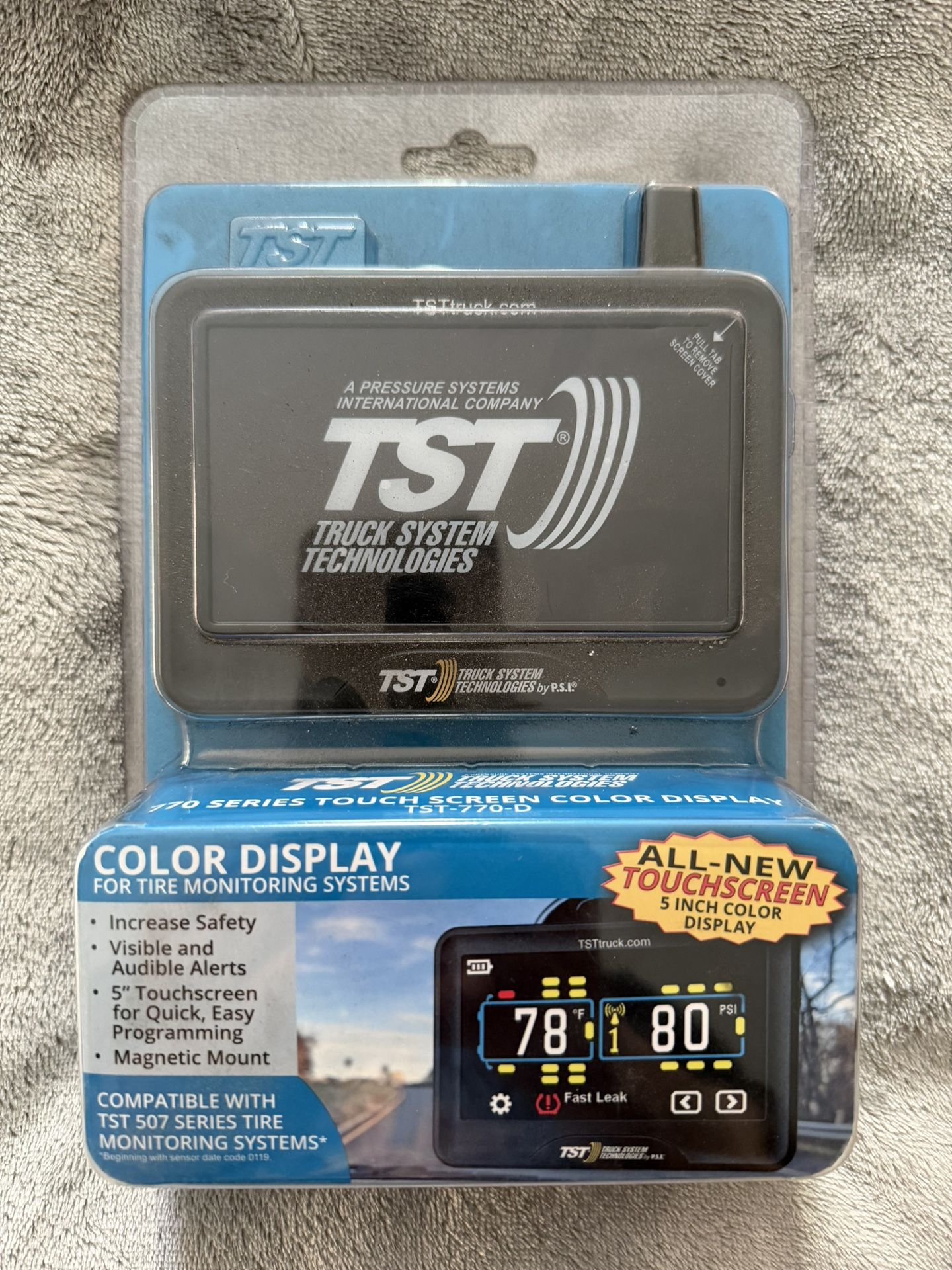 Brand new never open The Truck System Technologies TST-770-D 5" Color Display Tire Monitoring is a convenient and easy-to-install solution for monitoring your truck's tire pressure. With a magnetic suction cup mounting style, this tire pressure monitoring sensor from China is designed for interior placement in the cabin. The color display provides clear insights into your tire status, making it a reliable tool for maintaining optimal vehicle performance.
