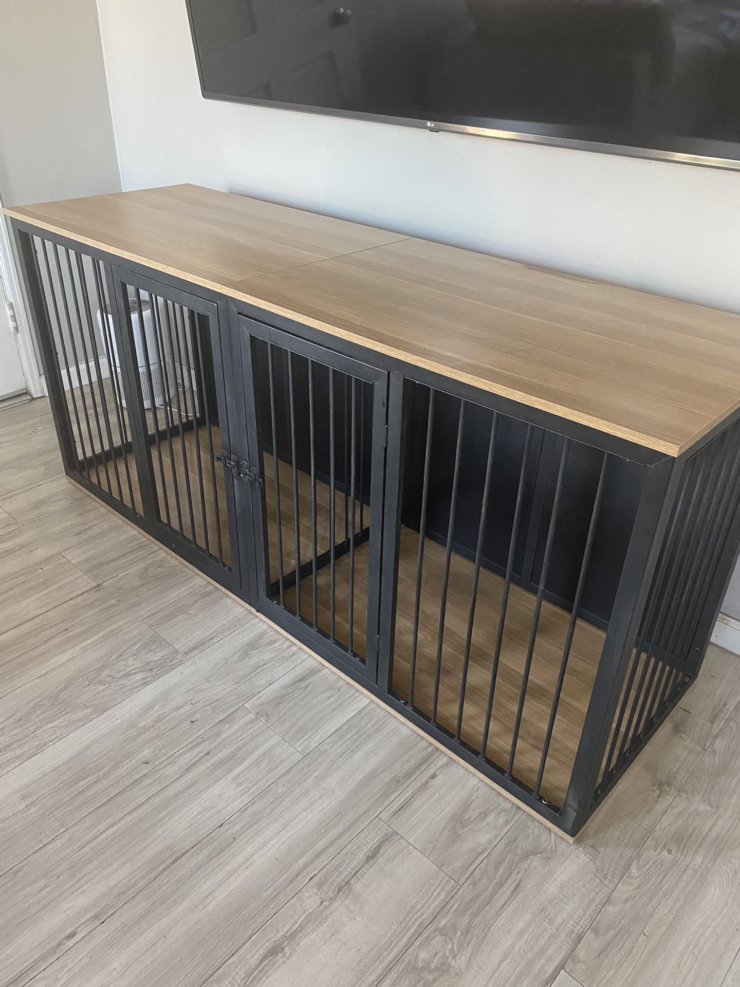Large dog crate furniture for 2 dogs, 71.6'' steel frame dog crate with double doors, heavy sturdy kennel for small, medium, and large dogs (Black)