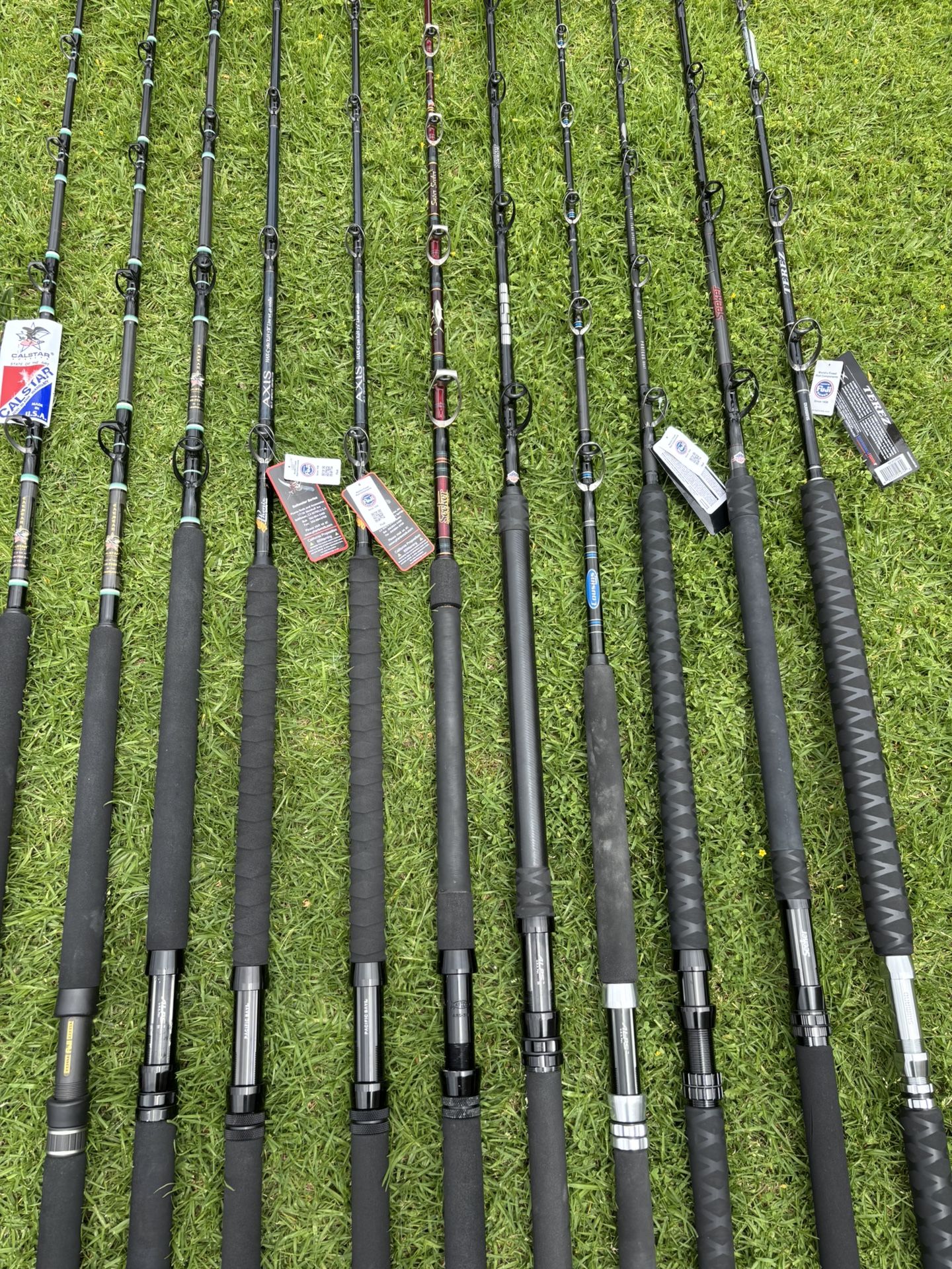 I have a good stock on rail rods right now. This is about half of them…. Anything from 60-200# If I don’t have it, it might not exist ! Seeker Calstar Phenix Cousins Daiwa Shimano * I have a ton of Calstar seeker UC phenix rods avet accurate okuma daiwa penn and shimano reels ^