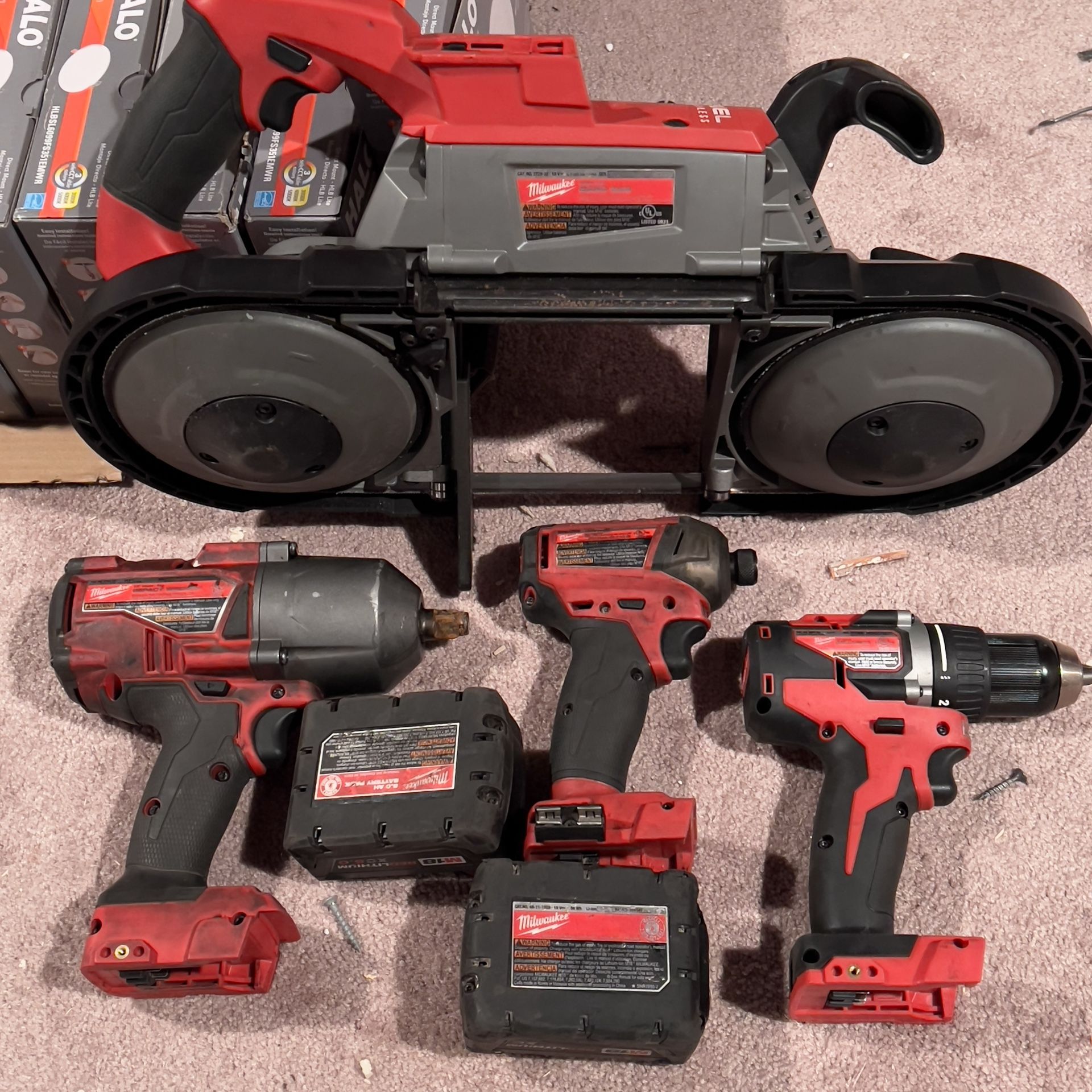 !!PRICE DROP!! **MUST SELL ASAP!** MILWAUKEE TOOL LOT! BANDSAW, BIG IMPACT, LITTLE IMPACT, DRILL, TWO BATTERIES!
