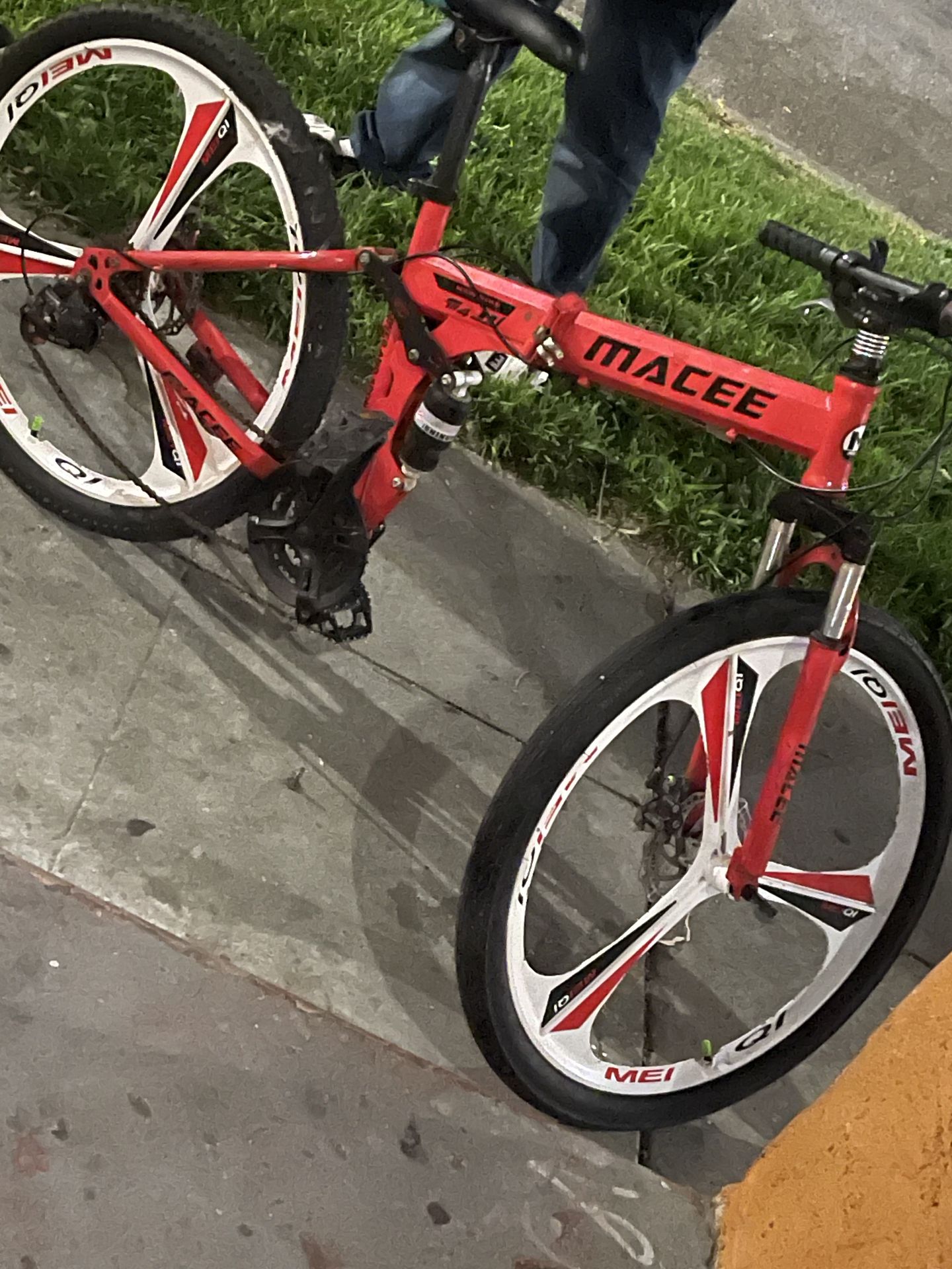 Macee 26 inch wheel size folding mountain bike use it like 3times it’s in good condition runs smooth n great paid more than wat I’m asking for price negotiable no low baller’s please