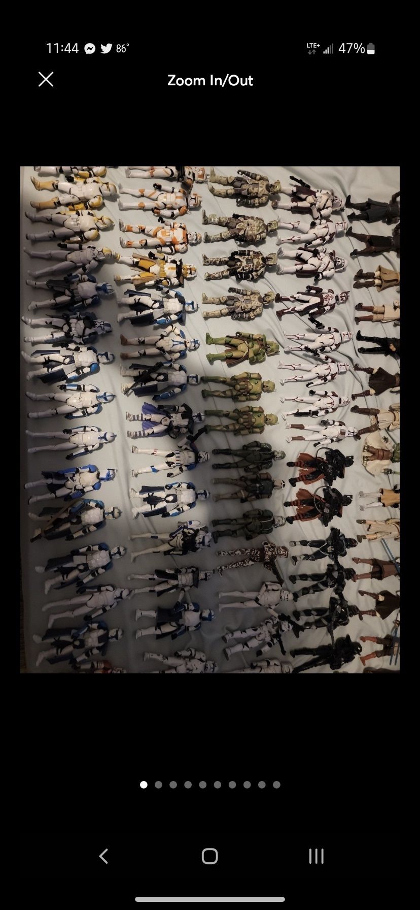 HUGE LOT 3.75 STAR WARS TOYS CLONE WARS. Here we have a huge lot of 3.75 Star Wars toys. There are around 161 figures that are from all the movies but mostly from the Clone wars series. All toys are in very good condition. Most have weapons and some don’t im also throwing in extra weapons. No toys are broken. Not breaking up toys, sold as lot. If you have any questions feel free to ask and no returns since there are to many toys to keep track of. Shipped with car and thank you.