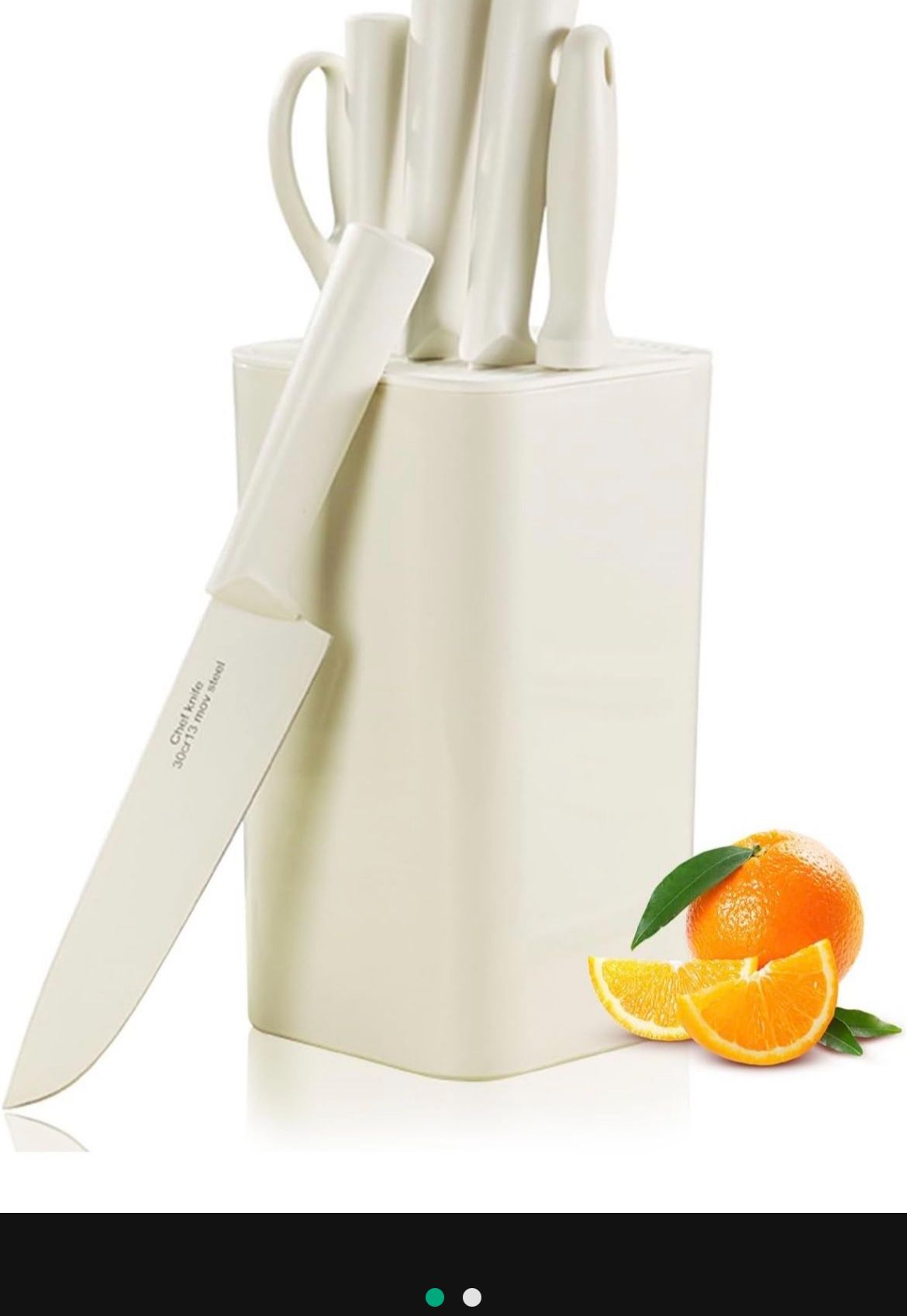 Knife Set,7-Pieces Sharp Knife Set with Universal Block and Sharpener,Stainless Steel Cooking Knife Set with Ergonomic Handle, with Non-stick Coating,(White) Brand new Still in box